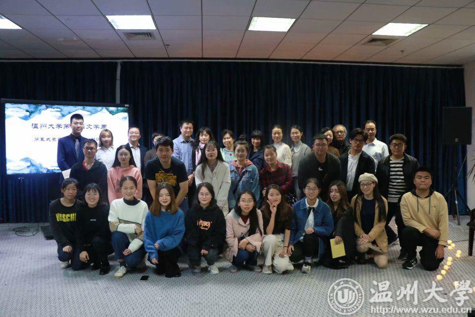 我校第二届文学周闭幕式暨双语诗歌朗诵会于2018年11月16日晚在育英图书馆213会议室落下帷幕。出席本次活动的嘉宾有温籍海外华文作家张翎,学者刘艳、东南大学副教授张娟、诗人池凌云、作家马叙、慕白、郑亚洪、周吉敏,以及樱花小说 院长孙良好、副院长朱晓申、副书记朱启鑫。此次活动在朱启鑫老师的致词下拉开帷幕。