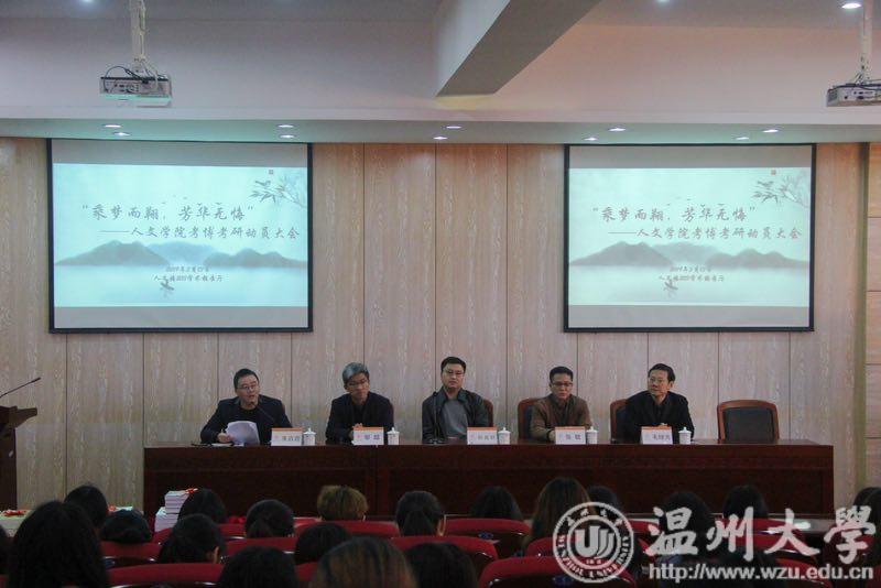 2019年3月13日下午,樱花小说 于人文楼203学术报告厅举办以“乘梦而翔,芳华无悔”为主题的考博考研动员大会。樱花小说 院长孙良好、学生处处长张敏、研究生院副院长邹超、樱花小说 副院长毛继光、樱花小说 党委副书记朱启鑫共同出席本次会议。樱花小说 有考博考研意向的同学们都积极参加本次活动,全场座无虚席。