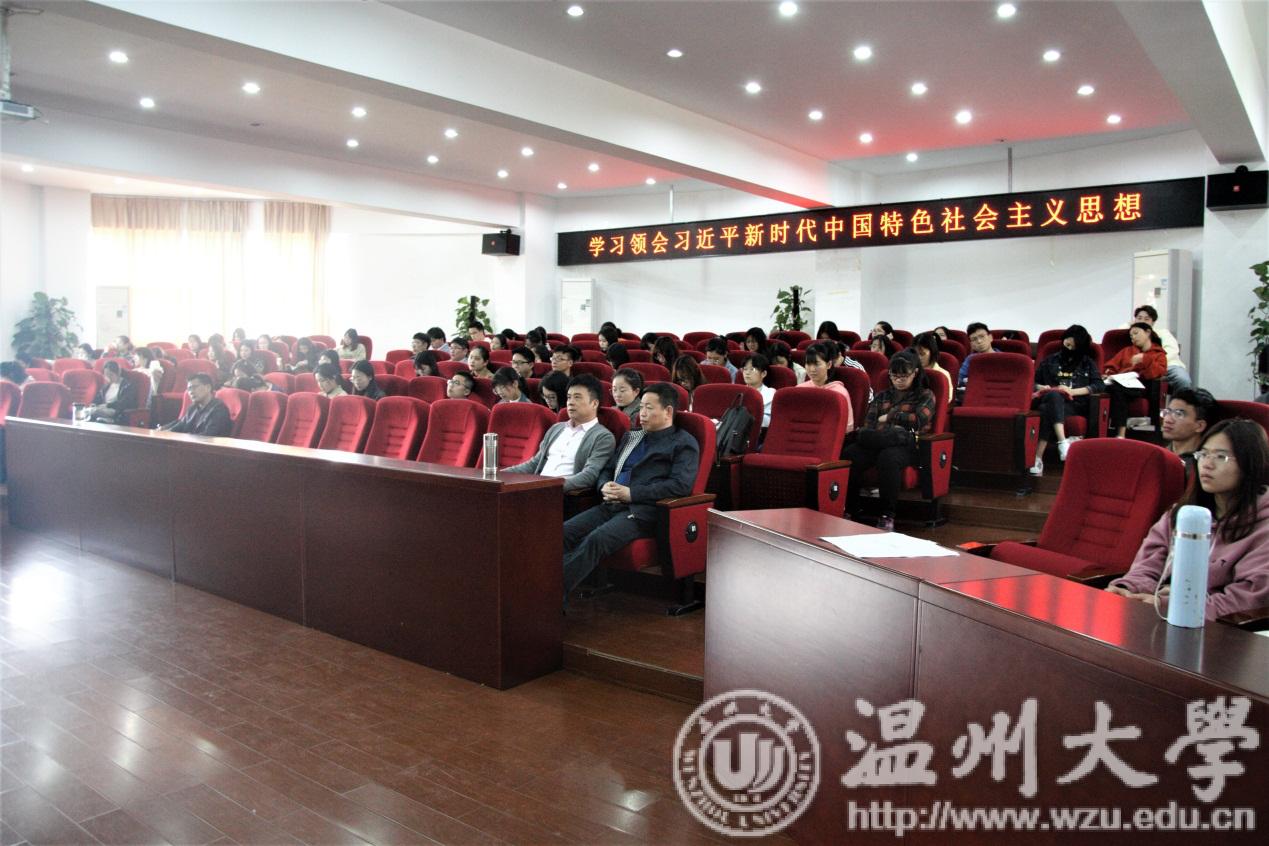 2019年4月12日13:30,迎着飔飔春风与阵阵花香,樱花小说 在北校区人文楼203学术报告厅成功举办了以“‘牢记青春使命,共圆强国梦想’——学习领会习近平新时代中国特色社会主义思想”为主题的讲座。本次讲座的主讲人为我校客座教授林式其,我院副院长刘建国出席。