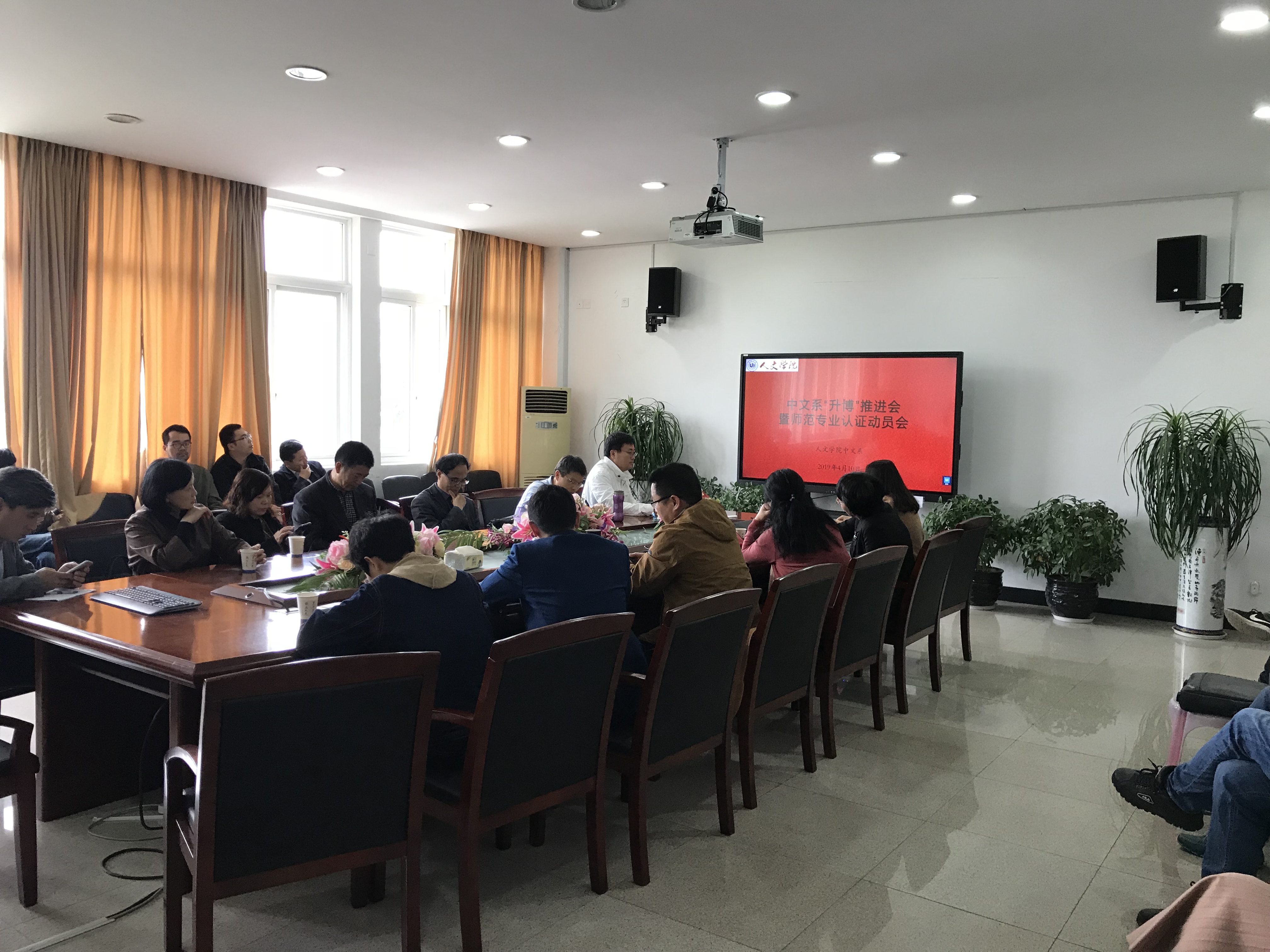 2019年4月10日下午,樱花小说 中文系在人文楼213会议室召开“升博”工作推进会暨师范专业认证动员会,学院院长孙良好、副院长郑春生及中文系全体教师参加了此次会议。会议由中文系主任陈源源主持。