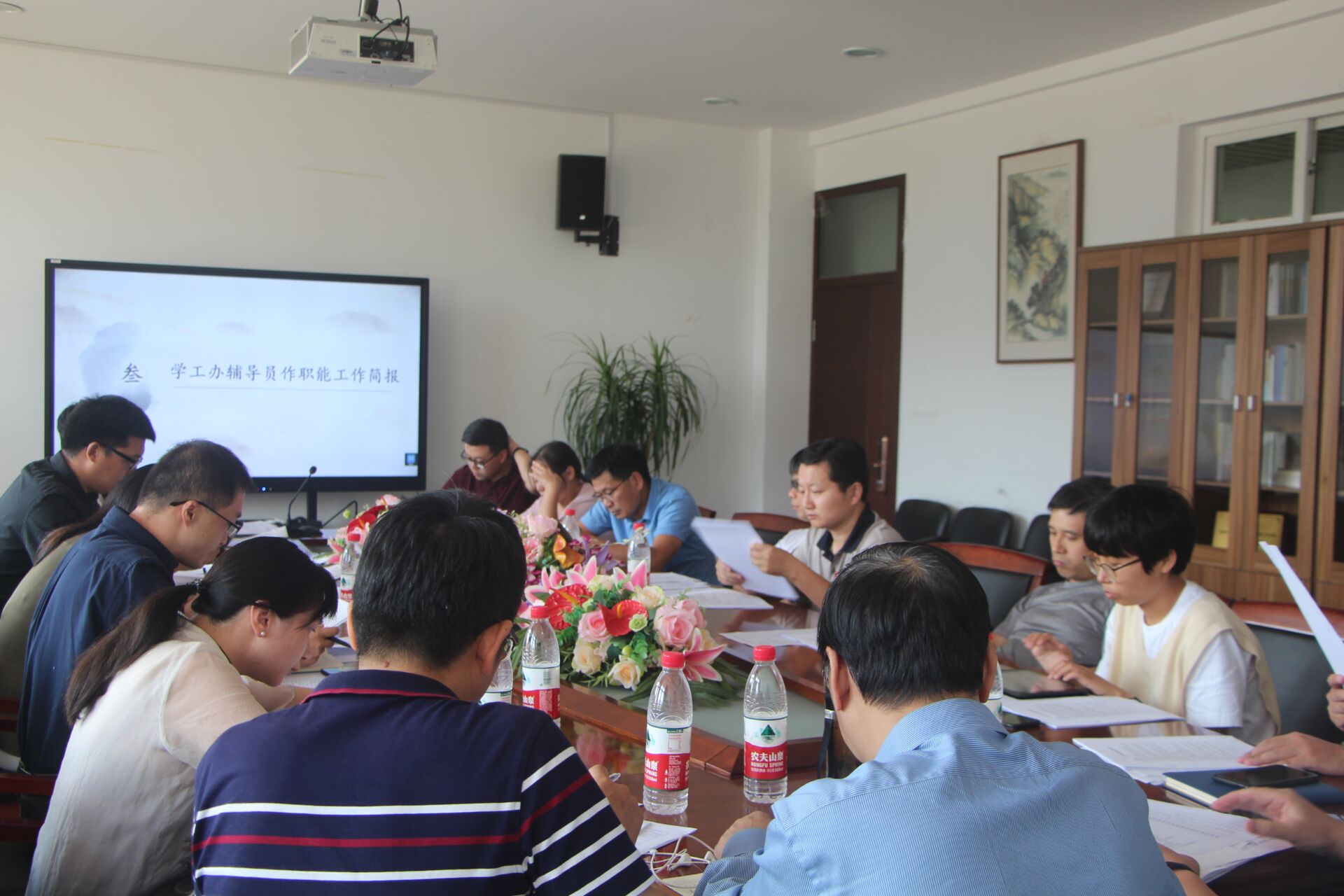 2019年9月25日下午,樱花小说 在人文楼213会议室召开了新学期班主任工作会议。参加本次会议的有院党委书记吴静、院党委副书记魏一,学工办主任刘纪峰、辅导员胡震鹏、申业磊、李丹萍以及各班班主任。会议由院党委副书记魏一主持。
