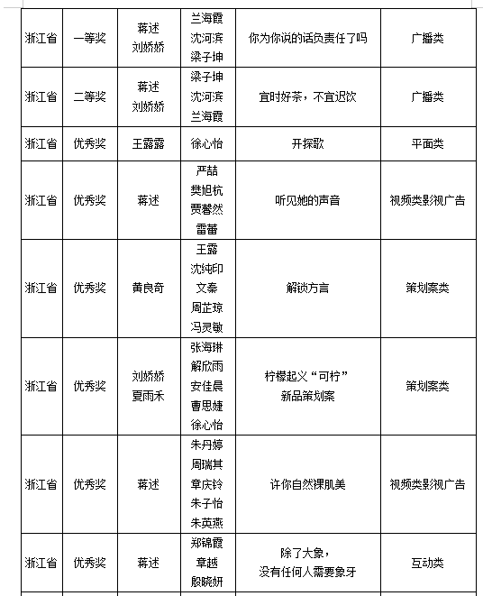 我校16广本学生沈河滨、梁子坤、兰海霞的作品《我的理想另一半》(指导师:蒋述、夏雨禾、刘娇娇老师)脱颖而出,荣获全国广播类一等奖。17广本张海琳、解欣雨、安佳晨、曹思婕、徐心怡的作品《柠檬起义“可柠”新品策划案》荣获全国策划案类二等奖;17广本黄周晔、陈航翔、解欣雨荣的作品《紧急脱毛》获全国互动类三等奖。