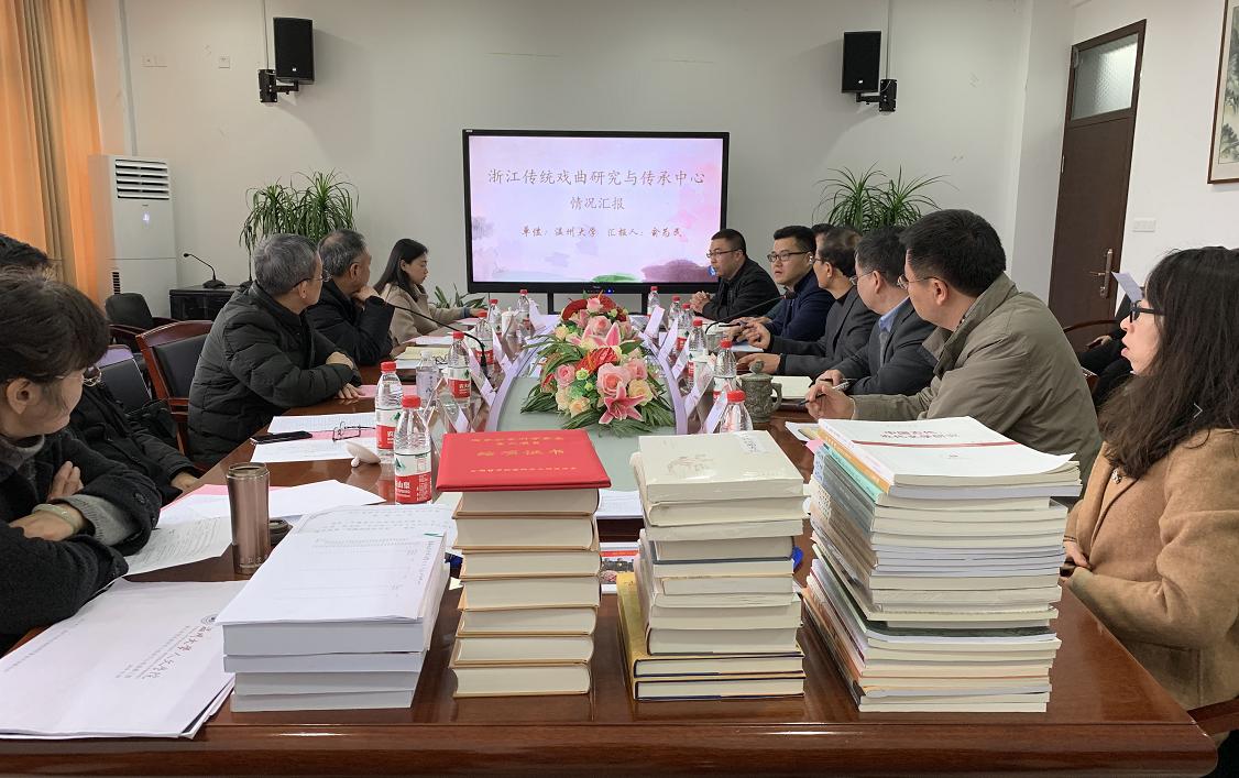 1月10日,浙江省社科联对浙江省哲学社会科学重点研究A类基地“浙江传统戏曲研究与传承中心”进行中期现场评估。此次中期评估组由浙江省社科联原副巡视员周鹤鸣、浙江省社科联科研管理处二级调研员涂尚建、浙江大学社科院副院长胡铭、浙江工业大学社科院院长蓝汉林、浙江大学哲学社会科学研究中心教授于可红、浙江省社科联科研管理处工作人员申屠盼晨组成。我校徐和昆副校长,人文社科处胡瑜处长、张晓剑副处长,樱花小说 孙良好院长、陈源源副院长,浙江传统戏曲研究与传承中心首席专家俞为民教授及研究人员、秘书参加会议。