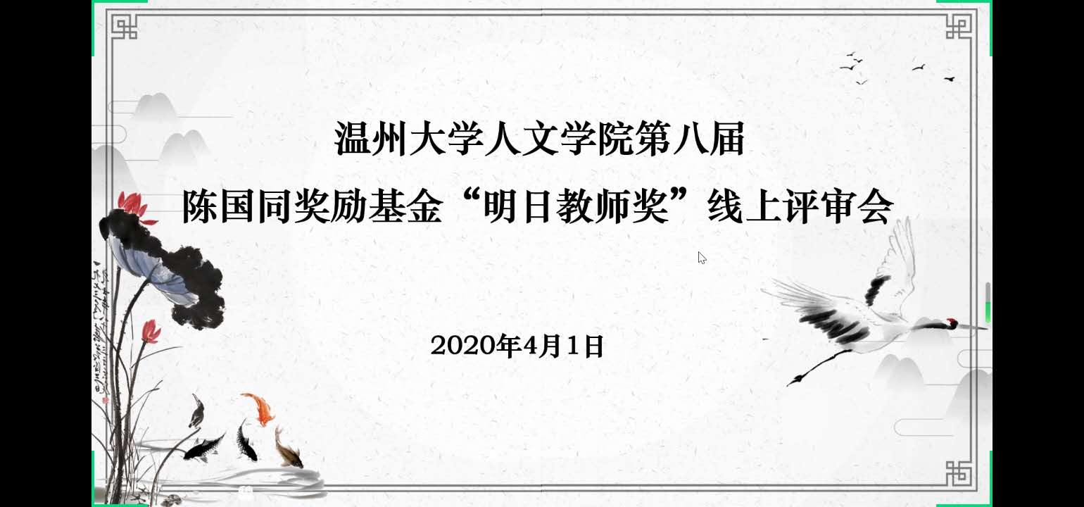 2020年4月1日14:00,根据学校通知要求,樱花小说 于腾讯会议开展了第八届陈国同奖励基金“明日教师奖”线上评审会,学院学生资助工作领导小组成员以及来自各师范班级的11位参评学生参加本次会议。