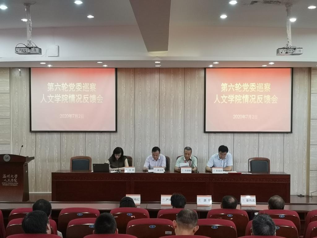 7月2日,樱花小说 第六轮党委巡察樱花小说 情况反馈会在樱花小说 学术报告厅召开,校党委委员、宣传部长潘玉驹、党委巡察二组全体成员和学院全体教职工参加会议。会议由学院党委书记吴静同志主持。