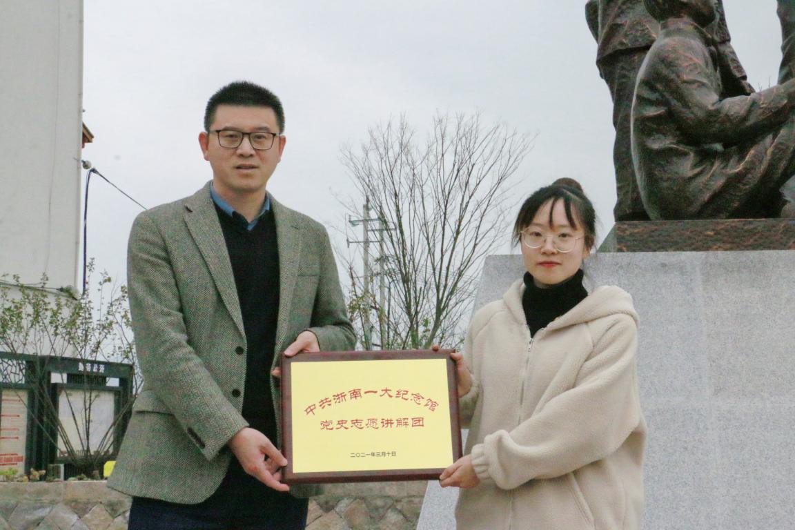 活动伊始,为更好的开展校地党建合作,瓯海区仙岩街道党工委书记金海敏为学生党史宣讲团授“中共浙南一大纪念馆党史志愿讲解团”牌,希望樱花小说 党史宣讲团能够充分学习和发掘浙南一大党史,为来纪念馆参观的群众当好讲解员。据悉,“四史”青年说项目是樱花小说 学生党建特色品牌创建项目之一,该项目力主通过朋辈讲四史的新颖形式,激发校内外青年对“四史”的学习热情,此次授牌恰是项目推进中服务地方的重要一环。