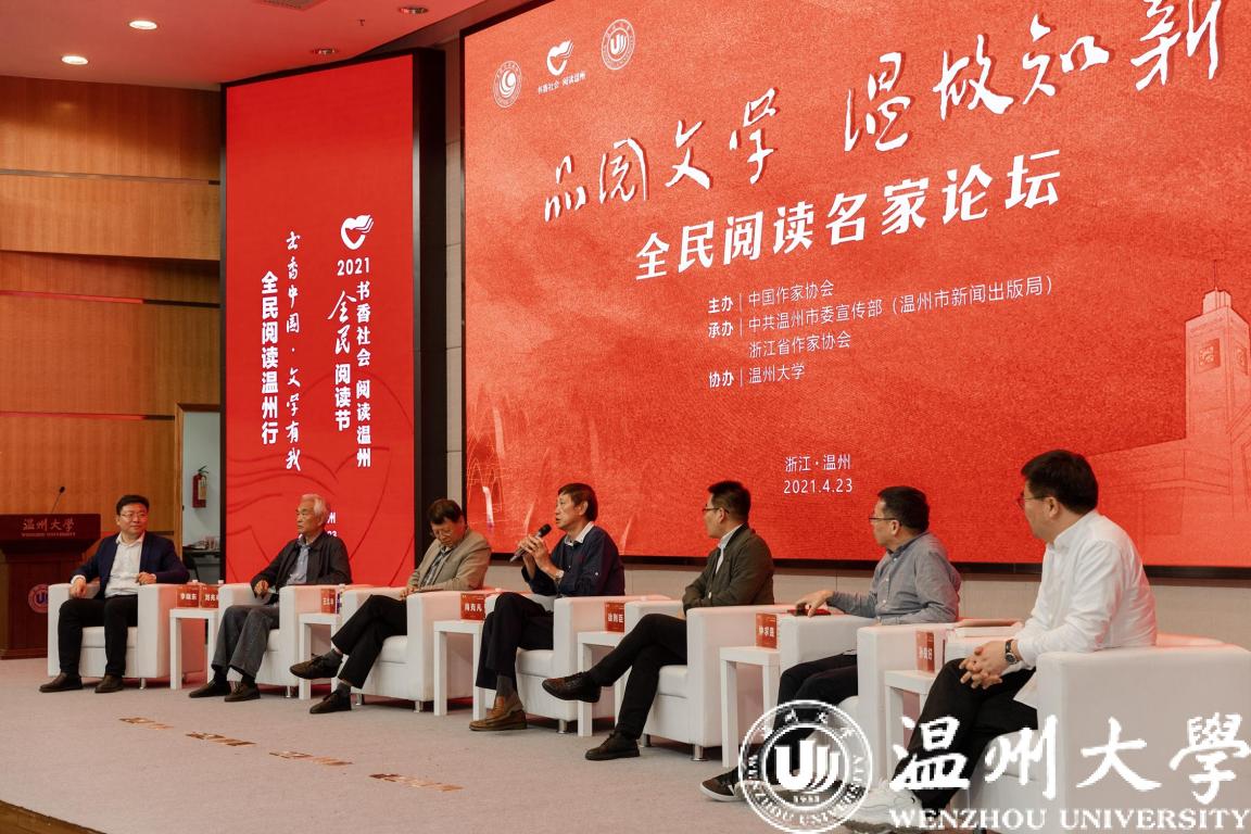 四月芳菲好,读书正当时,4月23日下午,2021年“书香中国 文学有我”全民阅读温州行重磅活动“品阅文学 温故知新”全民阅读名家论坛在樱花小说 举行。中国作协书记处书记邱华栋、中国作协社联部副主任李晓东、中共温州市委常委宣传部部长胡剑谨、樱花小说 党委书记谢树华、中国作协社联部二级巡视员丰玉波、浙江省作协党组成员、秘书长晋杜娟,中共温州市委宣传部副部长、市新闻出版局局长梅阳,樱花小说 党委委员、宣传部部长潘玉驹等领导嘉宾出席本次论坛。此外现场参与的观众有中国作家协会代表、温州市作家协会代表、温州市读者代表、我校师生代表等。