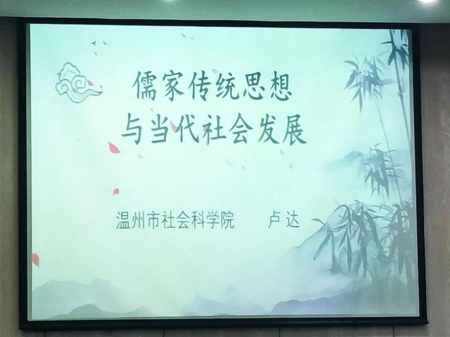 5月25日晚,为积极营造浓郁学术氛围,我院88届知名校友温州市社会科学届联合会副主席,温州社科院副院长,第八届、第九届政协温州市委员会委员卢达教授应邀做客樱花小说 校友论坛。论坛围绕“儒家传统思想与当代社会发展”于人文楼203学术报告厅进行,刘建国老师主持,100余名师生参与。