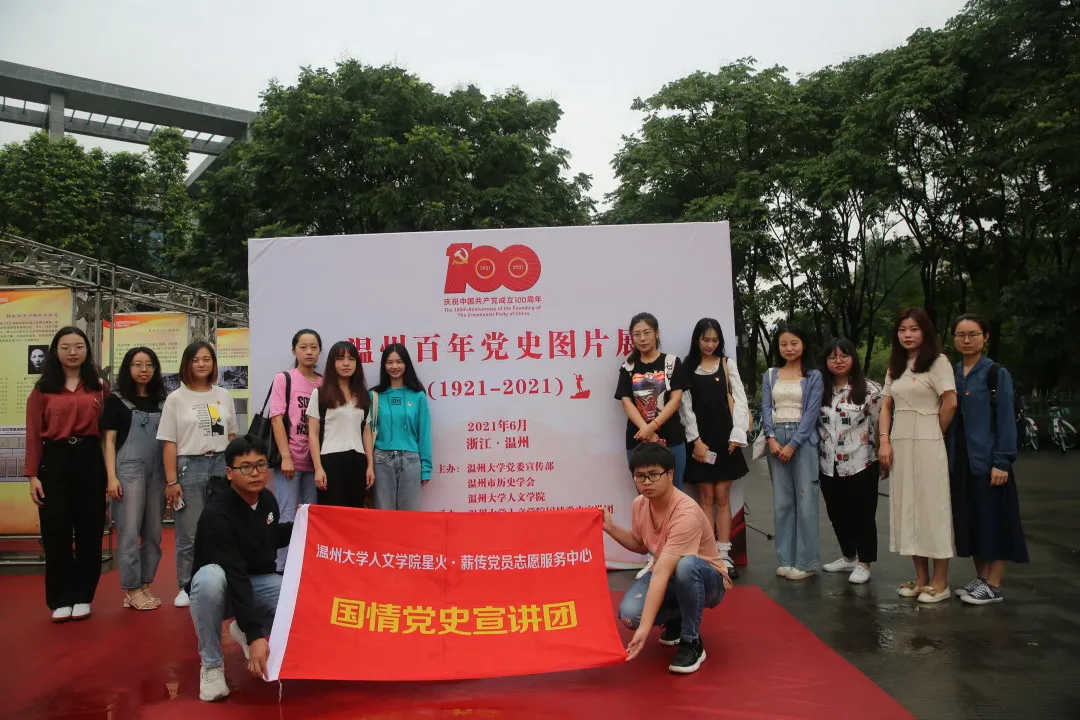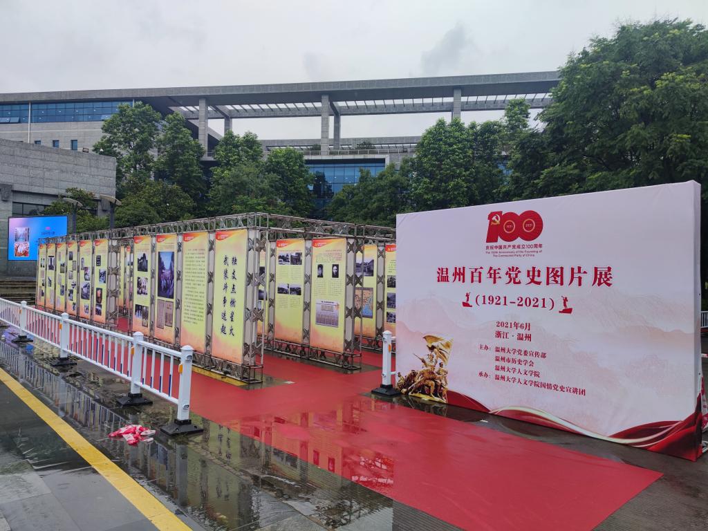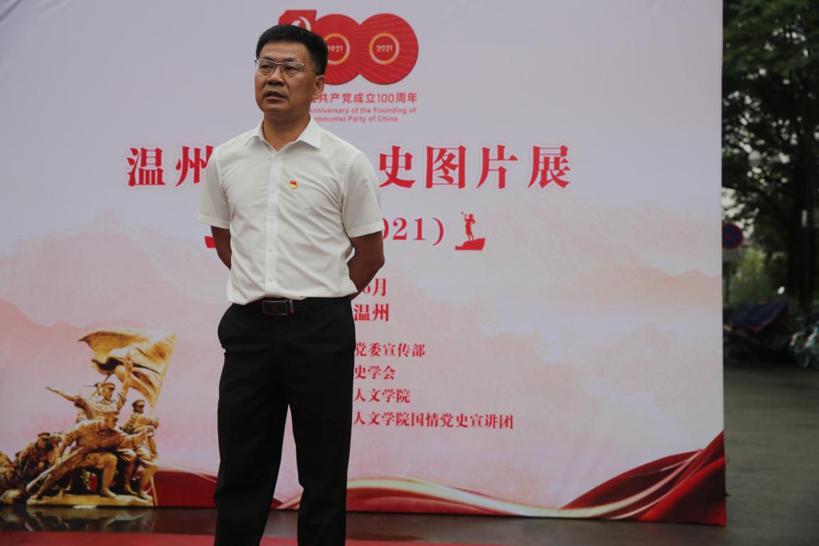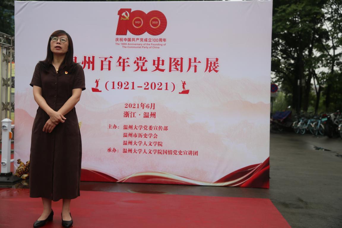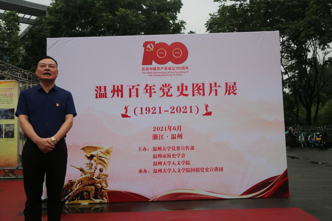 为庆祝中国共产党成立100周年,由樱花小说 党委宣传部、温州市历史学会、樱花小说 联合主办,樱花小说 国情党史宣讲团承办的“温州百年党史图片展(1921-2021)”于6月22日在樱花小说 育英图书馆前开幕。校党委委员、宣传部部长潘玉驹,樱花小说 党委书记吴静、党委副书记魏一、历史系教授刘建国及师生党员代表等出席。