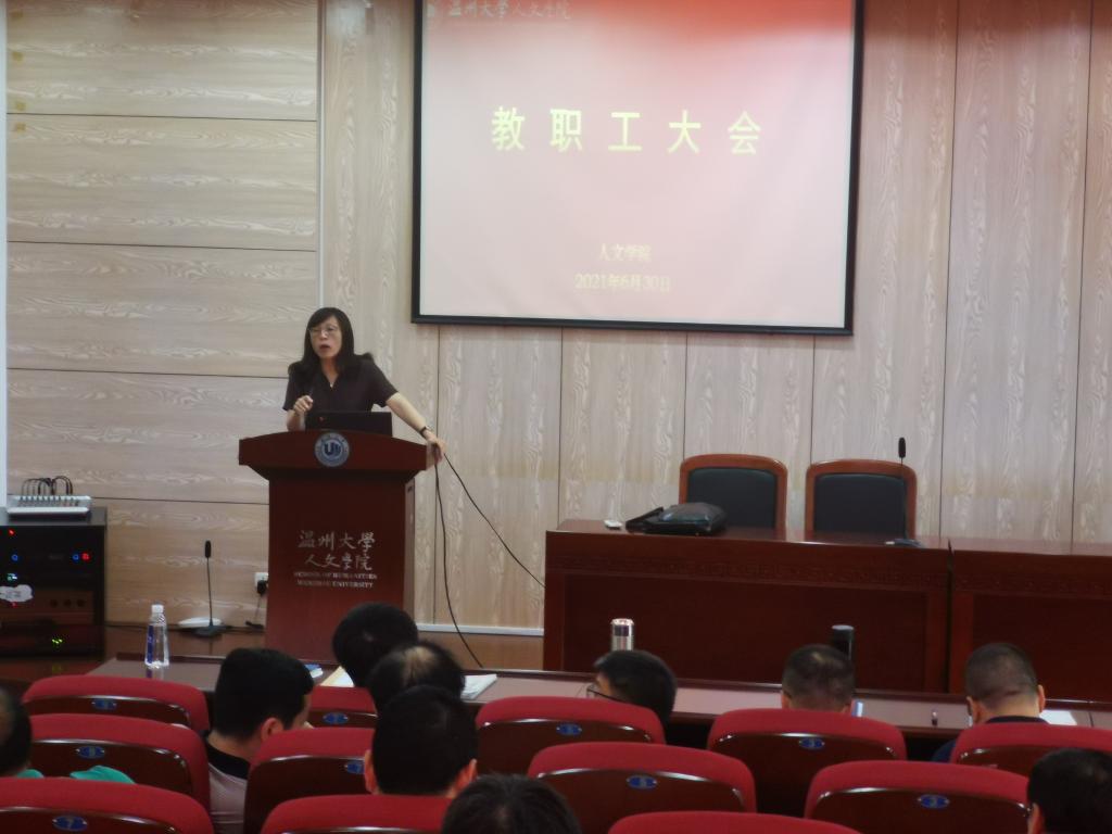 6月29日下午,樱花小说 在203报告厅召开了全体教职工大会。学院领导班子及全体教职工参加本次会议,会议由学院党委书记吴静主持。