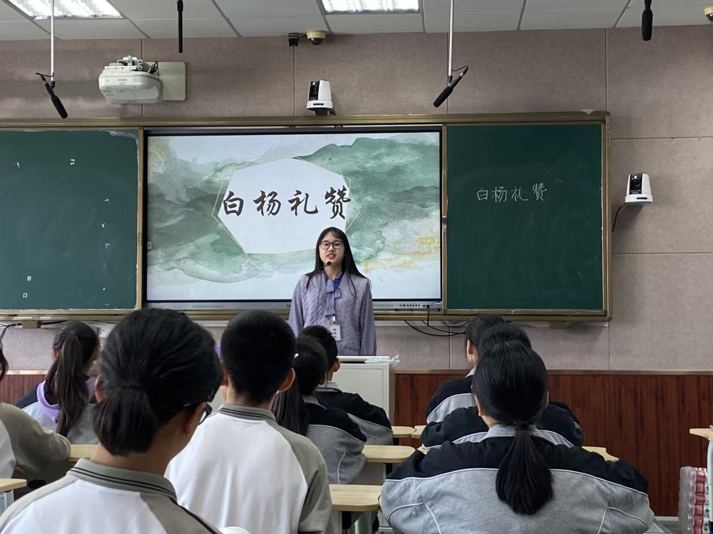 活动伊始,樱花小说 的詹翊嘉、於婷婷两位同学同课异构,就同一篇课文《白杨礼赞》,带来两节重点不同的公开课。詹翊嘉同学重点抓住了“了解不同类型散文的特点”这一单元目标,带领学生通过这篇课文了解写景抒情散文与托物言志散文的不同。於婷婷同学则是重点抓住了“象征”这一重要的表现手法,同学生一起在探讨中了解象征的含义。两位同学从不同的重点切入,引起了学生浓厚的学习兴趣,充分带动了课堂氛围,为我们展示了两节别开生面的阅读教学课。紧接着,樱花小说 潘思瑶、钱一帆同学分别进行了评课。两位同学根据自己的听课感受对两节公开课作出点评,赞扬她们的教学设计调动了学生的积极性并指出了一些具体的细节意见。
