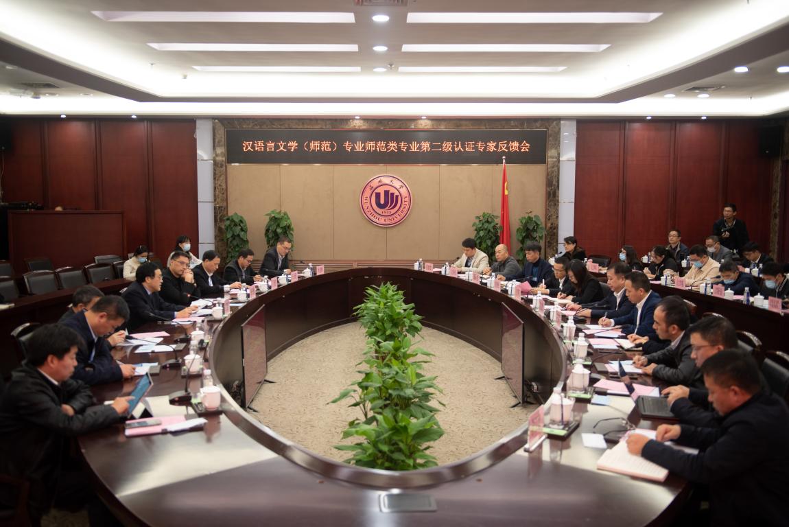 赵敏代表学校对各位专家和教育厅领导的辛勤工作表示由衷的感谢和崇高的敬意,对汉语言文学专业全体师生在准备工作中做出的辛勤劳动表示亲切的慰问和深深的谢意。针对专家组在反馈中提出的问题和不足,赵敏表示,一是坚持持续改进,持续提升专业建设内涵;二是坚持以点带面,推动全校师范类专业建设;三是坚持整体提升,实现高质量发展。他指出,近日我校成功获批博士学位授予单位,各师范专业要争取在2025年前全部申请并通过二级认证、已经通过认证的专业要继续创造条件,争取参加三级认证。