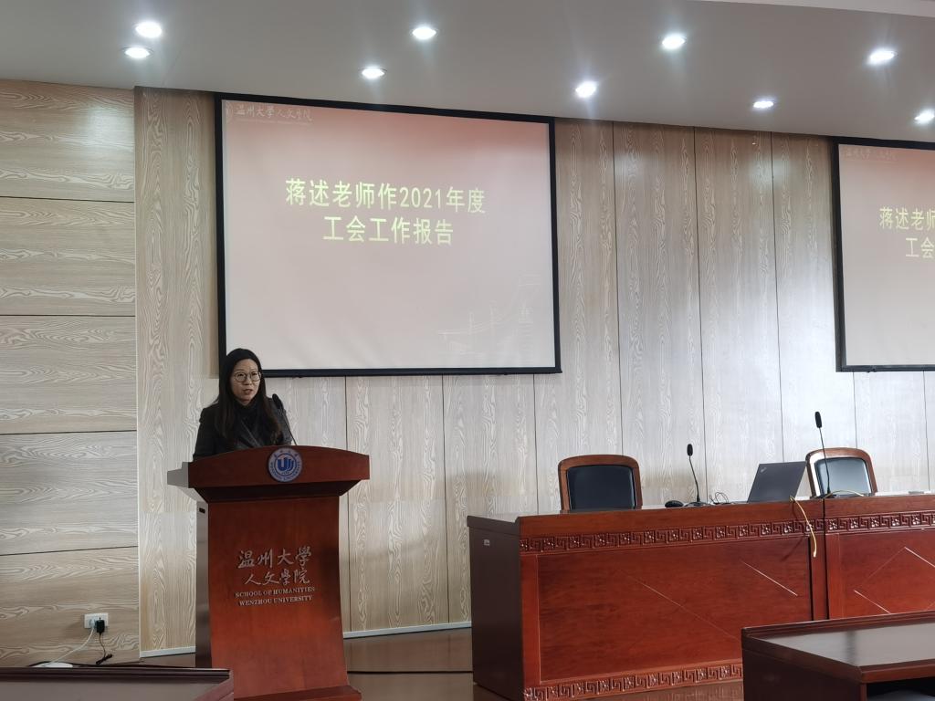 学院工会主席蒋述老师作《樱花小说 2021年度工会工作报告》,报告全面回顾了樱花小说 第五届工会在过去的一年里全面履行各类工会职责,较好地完成了工会的各项工作任务,并对学院工会经费使用作了说明。同时对学院全体老师对工会工作的配合和支持予以衷心的感谢。