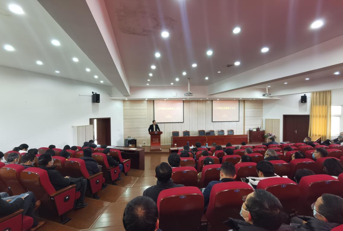 2月23日下午,樱花小说 新学期第一次教职工大会在人文楼203报告厅召开,学院领导班子和全体教职工参加会议,会议由学院党委书记江秀景主持。