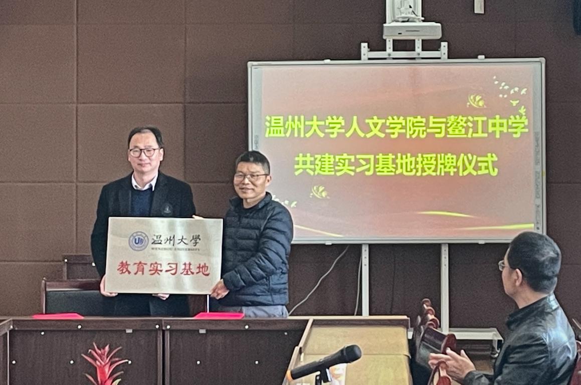 鳌江中学李伟君校长对实习生的到来表示热烈欢迎,并向实习生简单介绍鳌江中学概况,希望实习生们通过此次实习,能够积累经验、丰富阅历、互进互助。鳌江中学高一年段副校长王大府老师向实习生们简单介绍了高一年级概况,并对实习生们提出了“看、问、勤、盯、解、离”等六点要求和建议。紧接着,鳌江中学政教主任陈晓瑜老师、教务处易会潮老师、高一历史备课组组长张剑老师和实习生代表林彦秀同学依次进行发言。随后,樱花小说 副院长郑春生作总结讲话,郑院长首先介绍了今天的温大,欢迎鳌江中学学生报考樱花小说 ,同时对实习生们提出心学习、勤于创新;恪守规则、勇于创新;宽以待人、心怀感恩几点要求。最后,举行了樱花小说 与鳌江中学共建实习基地授牌仪式,郑春生副院长与李伟君校长进行签约。