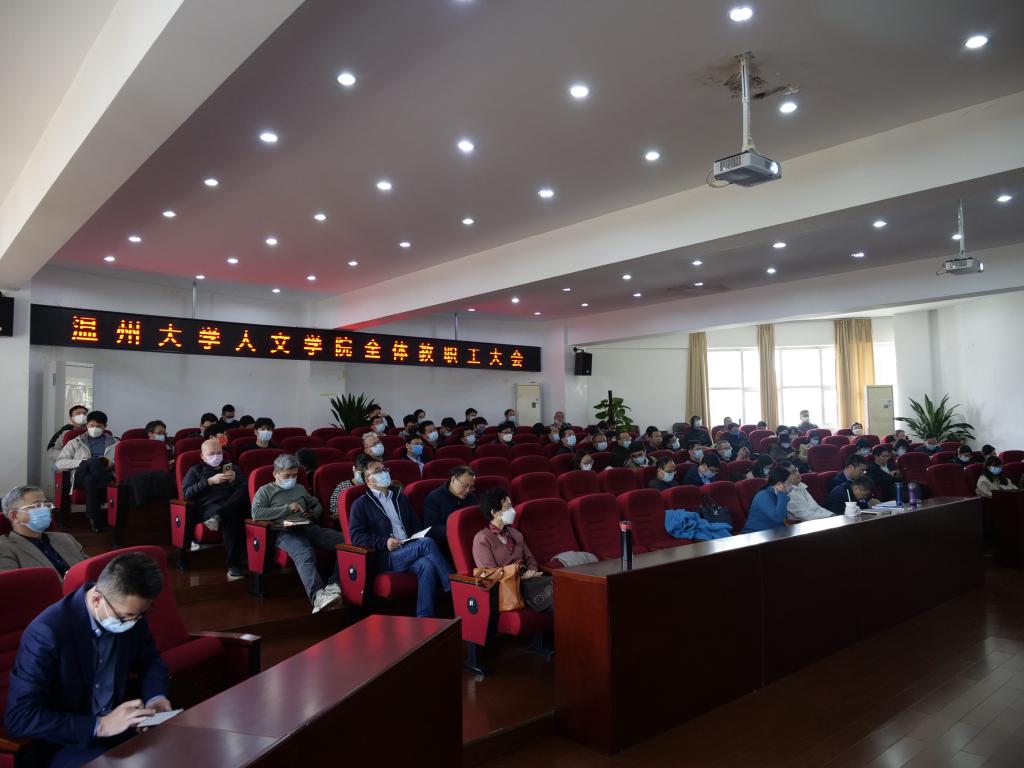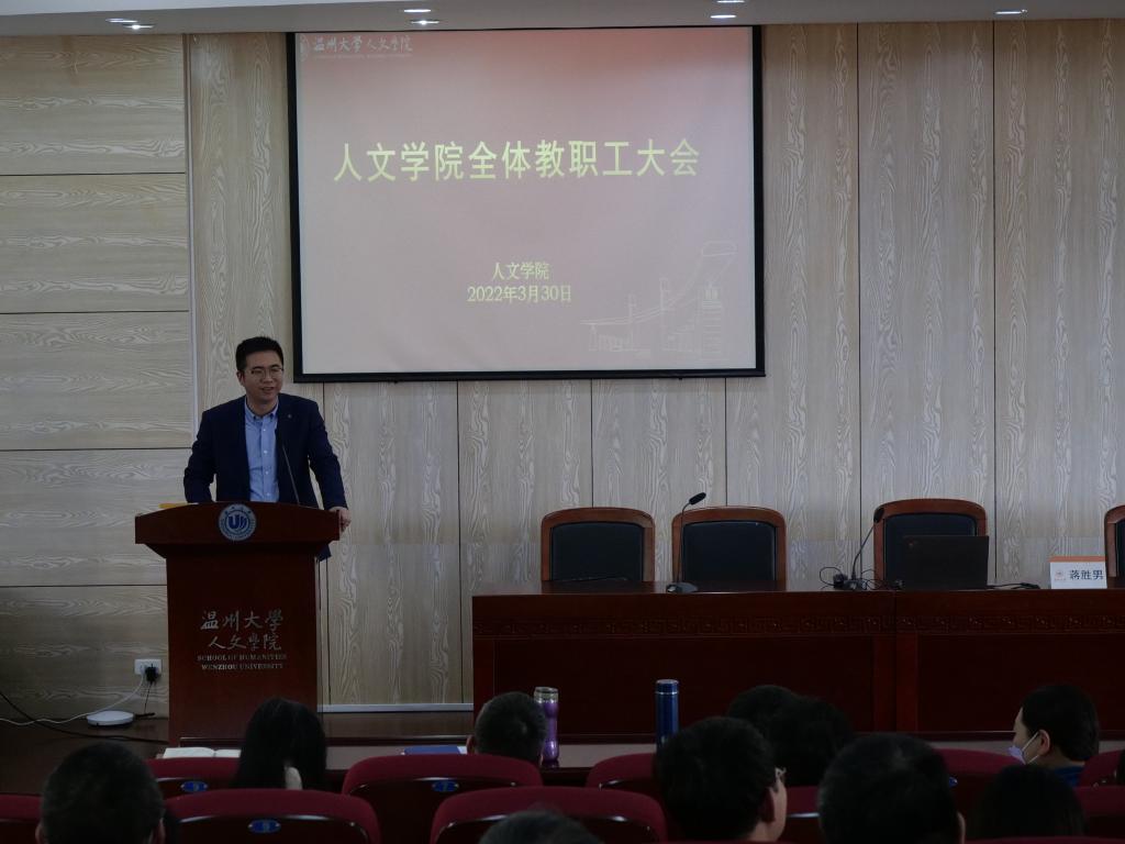 3月30日下午,樱花小说 于人文楼203报告厅召开了全体教职工大会暨理论学习会,会议由学院党委书记江秀景主持,学院领导班子和全体教职工参加会议。