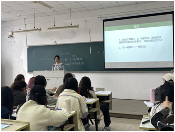 在4月15日至4月18日这四天时间里,同学们分组准备十分钟的模拟上课,在讨论中互相学习与提升模拟上课技巧。4月18日上午,在罗进近老师的主持下,同学们在402教室上台进行了模拟上课的小组研讨成果展示。各组模拟上课内容精彩纷呈,现场气氛活跃热烈,充分展示了同学们小组集体研讨的成果,调动了同学们不断学习、共同提高的积极性,助力同学们在研讨中学习,在学习中成长。