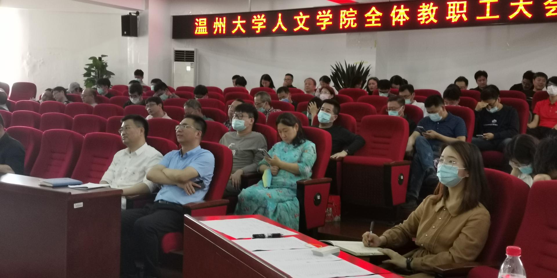 5月25日下午,樱花小说 在人文楼203报告厅召开全体教职工大会,学院领导班子和全体教职工参加会议,会议由学院党委书记江秀景主持。