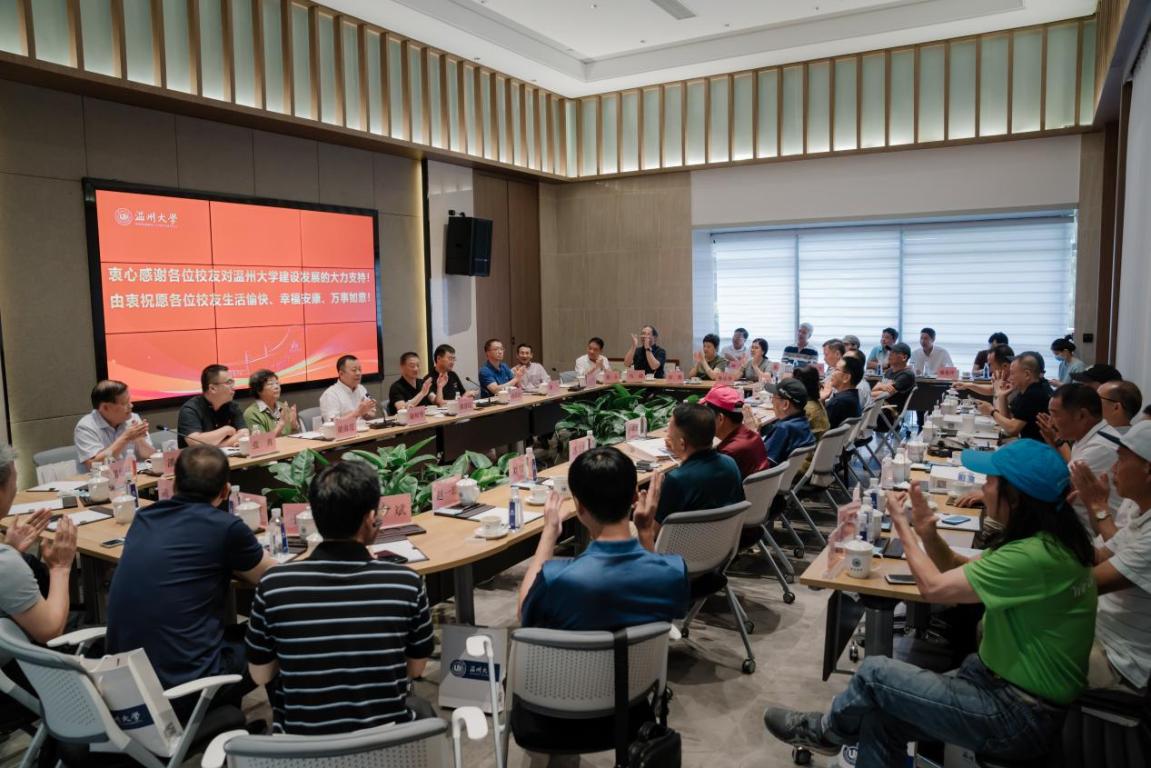 座谈会在校友之家一楼会议室举行,由文成县人事劳动社保局原党组书记、局长,校友潘亦建主持。会上,浙江省政府特约研究员钱建民作为校友代表发言,他对母校精心的安排表示感谢,并对母校近年来的飞速发展感到自豪,同时分享了其在校学习和工作的经历。他提出了三点希望:第一,希望母校未来不断进步和发展,各项事业更上新台阶;第二,希望母校发挥自身优势,办出特色;第三,希望母校立足教学,重视培养学生的道德品质、心理素质和钻研精神。