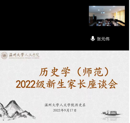 9月17日,樱花小说 历史学系2022级新生家长座谈会顺利召开。此次会议采取线上线下相结合的方式,分别在人文楼213会议室和腾讯线上会议室同时进行。樱花小说 副院长郑春生、党委副书记魏一、学工办辅导员申业磊,2022级历史学(师范)班主任刘子玉、张元伟,2022级历史学(师范)全体新生家长参加了会议。