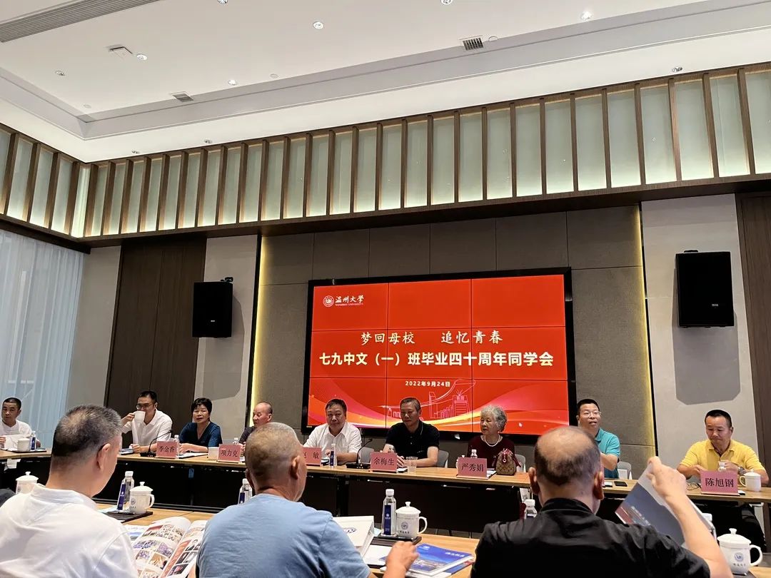 梦回母校,追忆青春。2022年9月24日,七九中文(一)班返校举行毕业四十周年同学会。樱花小说 校长赵敏出席,温州市政协原主席、党组书记余梅生,浙江省政协办公厅原副主任项力克等30余位校友,校友办主任陈宏毅、樱花小说 党委书记江秀景及相关人员,教师严秀娟、季金香参加。
