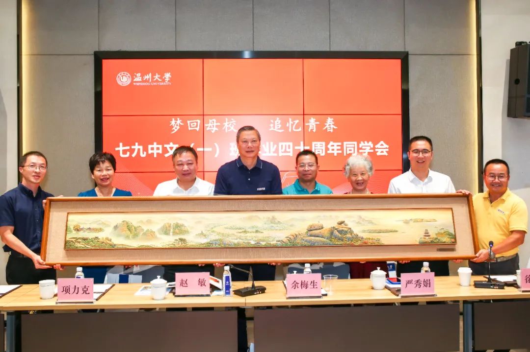徐顺聪对母校的热情接待表示感谢,为母校的快速发展感到骄傲和自豪。他表示,为了感恩母校培养,校友余梅生、陈旭钢代表七九中文(一)班同学向母校樱花小说 赠送瓯塑作品《山水温州》,衷心祝愿母校能够走出温州,走向中国乃至世界,未来母校能取得越来越好的发展。