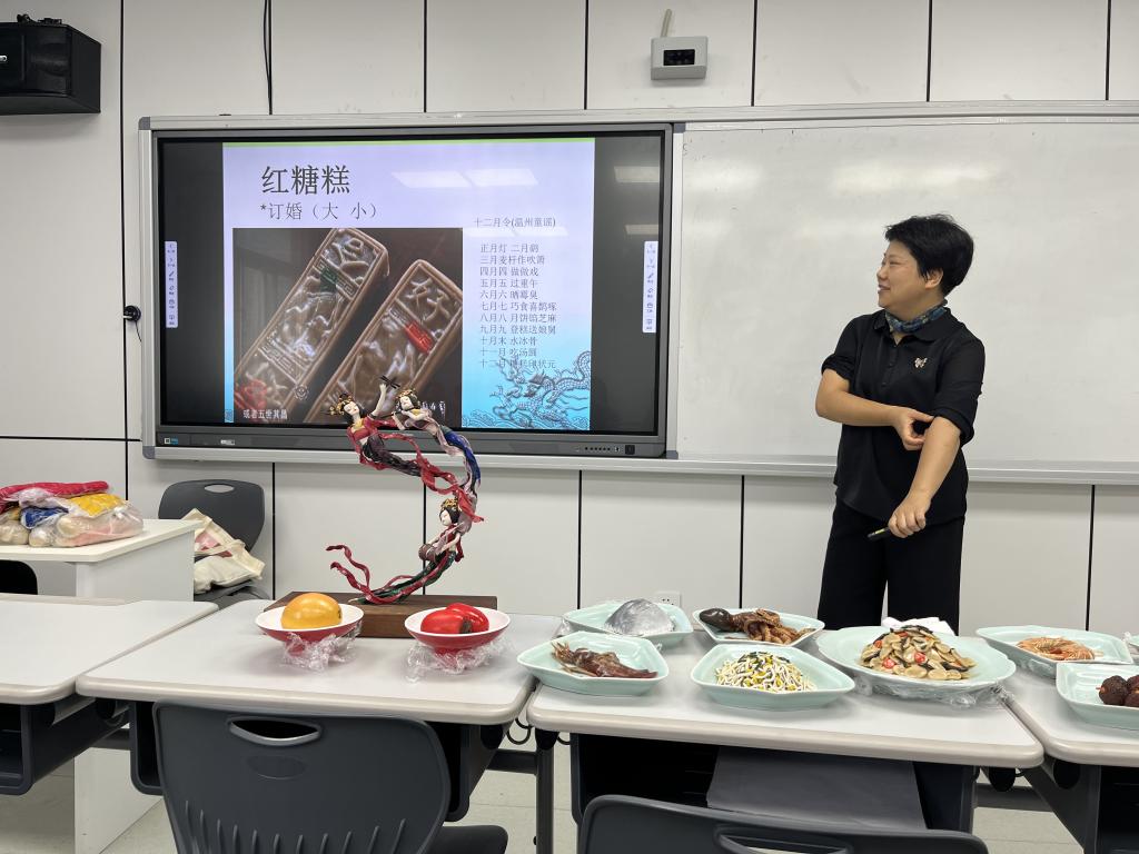 11月11日,“手造温州”课堂迎来了第二位手工艺人——乐清米塑工艺传承人郑小红老师。“九月九,登糕送娘舅。九月九吃要登糕,这是我们乐清人的民俗乐事。……”上课一开始,郑小红老师就十分风趣幽默地讲述了“红糖糕”和“白年糕”的民俗趣事和在四时八节、结婚礼俗中的造型特点。美味触动味蕾,郑老师还与同学们分享了她带来的自家手工红糖糕。