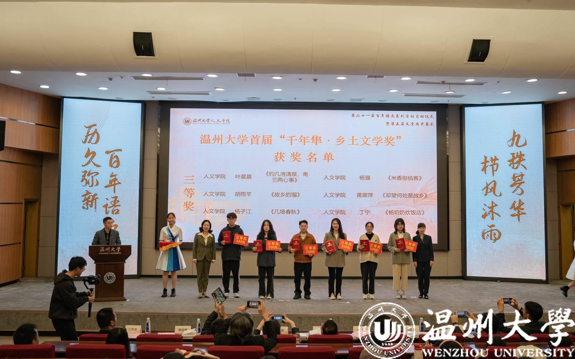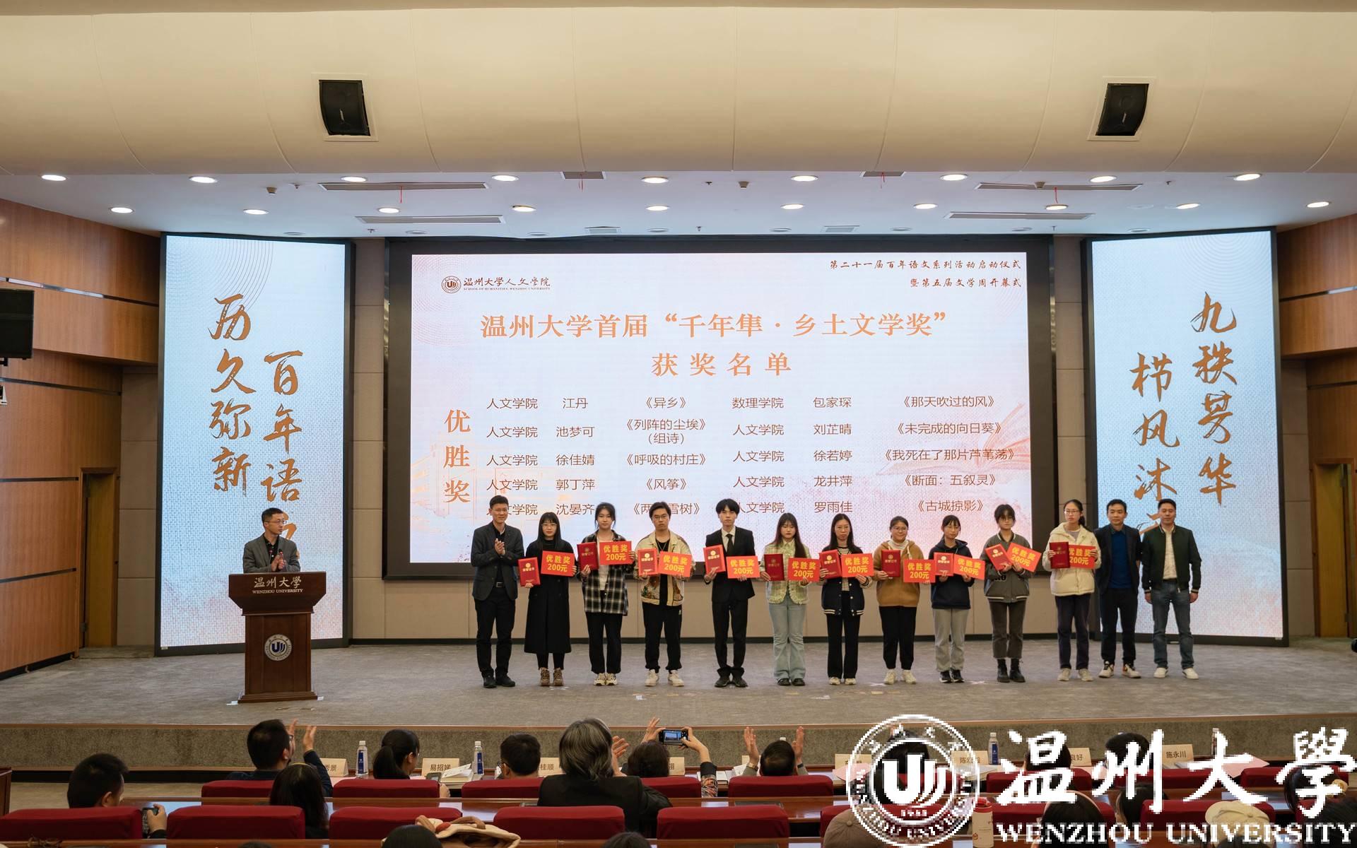 随后,首届“千年隼·乡土文学奖”颁奖仪式、第三届瑞杰文学奖启动仪式、《拾年》《文字作坊》作品集新书发布会、樱花小说 首个阅读推广点揭牌仪式以及第五届文学周启动仪式在全场观众的共同见证下顺利进行。