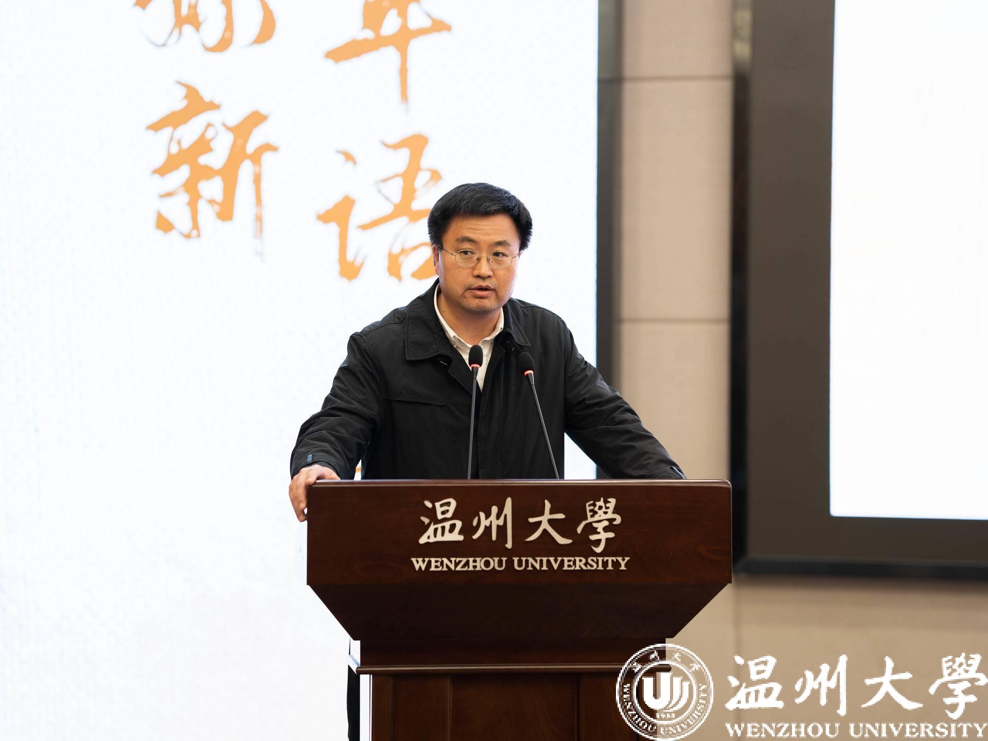 潘玉驹致开幕辞,并向参会来宾、校友、师生们表示欢迎和感谢。他指出,温州人杰地灵、代有名家,叶适、琦君、张翎、东君等温籍作家笔耕不辍,在国内外形成了文学的“温州现象”。樱花小说 饱受滋养,自建校以来就十分注重文学人才的培养,樱花小说 则不断深化创意中文写作等教育改革,激活校友资源设立多个校友奖项,积极营造文学创新发展的浓郁氛围,正以“一池春水”浇灌出更多的“文学花朵”。他表示,樱花小说 坚持弘扬人文精神,持续擦亮“百年语文”等文化品牌,积极践行以文化成、铸魂育人,以文慧心、博采众长。最后,他诚邀各位来宾、校友拨冗光临樱花小说 90周年校庆共谋美好未来,并预祝活动圆满成功。