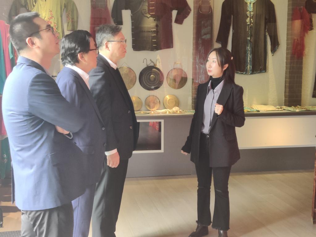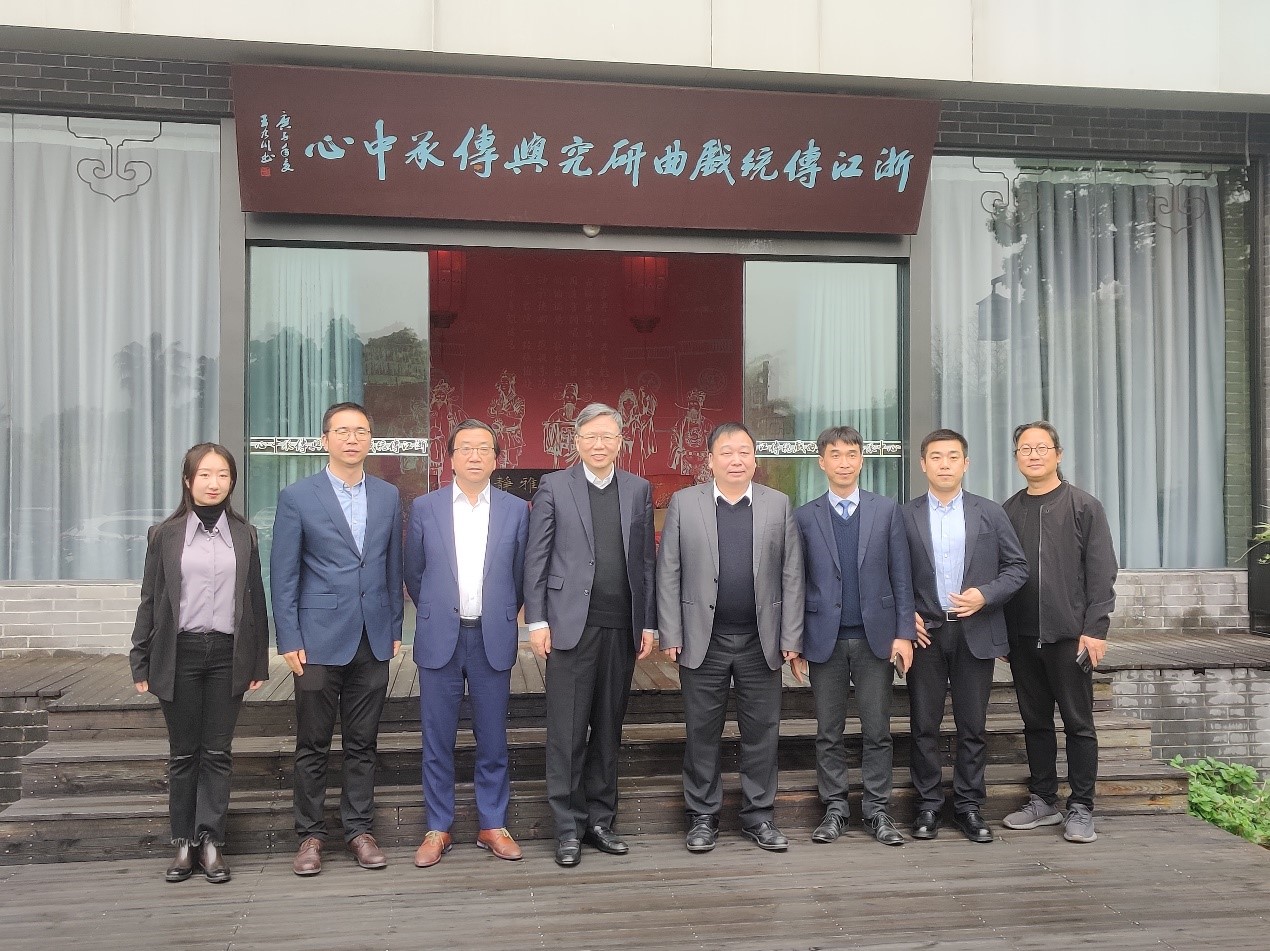 党委书记江秀景和中文系主任鲍良兵的陪同下,莅临浙江传统戏曲研究与传承中心调研指导。中心赵天骄博士负责讲解。