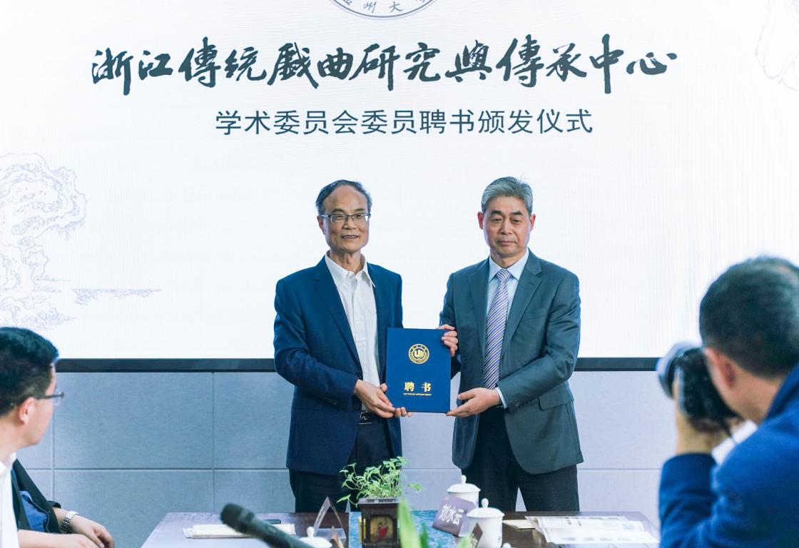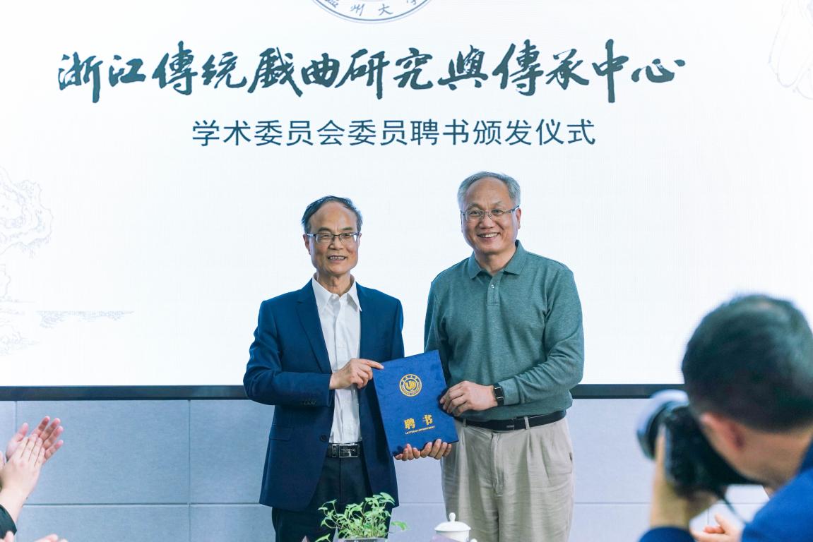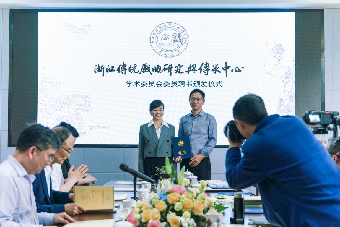 随后的中心学术委员会委员聘书颁发仪式上,樱花小说 副校长徐和昆教授、戏曲中心主任俞为民教授、温州市社科联副主席叶雪影为浙江传统戏曲研究与传承中心学术委员会委员叶长海、杜桂萍、廖可斌、黄仕忠、王馗、朱恒夫、孙书磊、王宁、刘水云教授等颁发了中心学术委员会委员聘书。