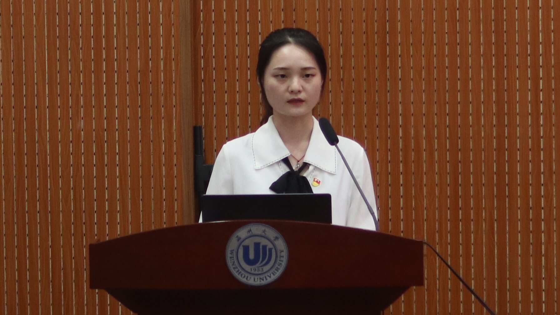 最后,由新任党服中心主任21汉语言文学(师范)1班的章可怡发言,她从优化部门设置、加强党建品牌建设、强化内部管理等方面阐述党服中心接下来的工作方向,切实履行党服的职能。