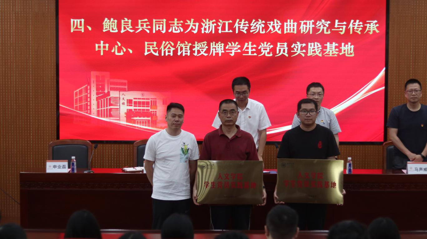 党委委员鲍良兵同志为戏曲中心、民俗馆授牌学生党员实践教育基地,举行了师生党支部结对共建签约仪式和学院党建文化长廊规划启动仪式。