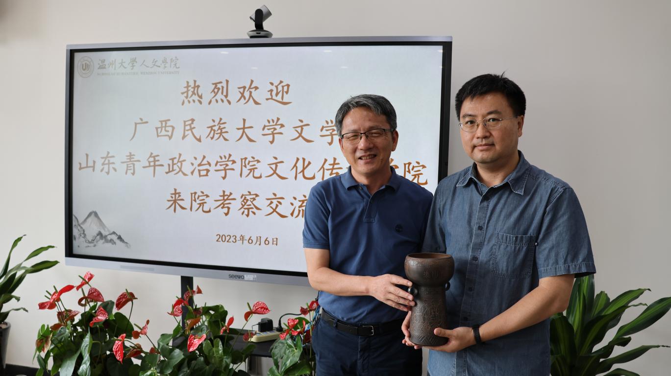两所来访高校教师对樱花小说 的热情接待和诚恳交流表示感谢,对樱花小说 在学科建设与汉语言文学(创意中文实验班)的建设举措及取得的突出成绩表示赞赏。广西民族大学文学院向樱花小说 捐赠了促进两院深入合作的纪念品。