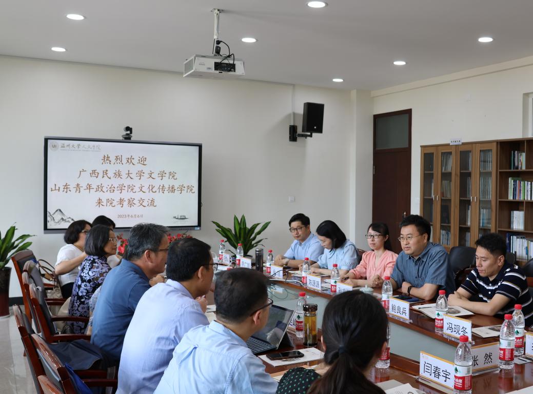 6月6日上午,广西民族大学文学院叶君院长和山东青年政治学院文化传播学院王连峰书记一行人来樱花小说 交流访问。樱花小说 孙良好院长、陈源源副院长、中文系主任鲍良兵、中文系副主任余琼、中文系副主任李广旭和办公室主任马声威予以了热情接待。座谈会主要围绕樱花小说 在学科科研建设、人才培养和汉语言文学(创意中文实验班)专业建设等方面展开交流学习。