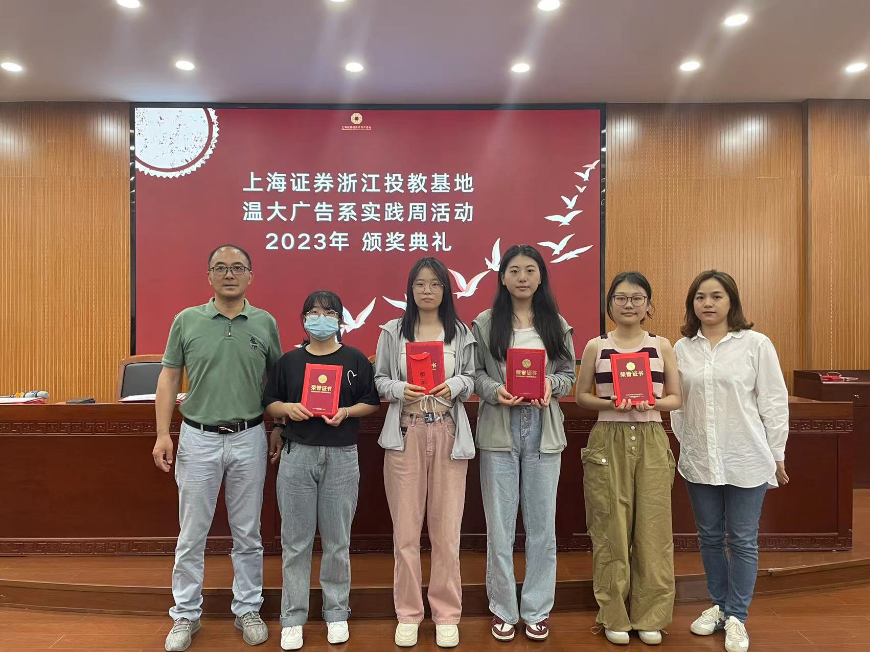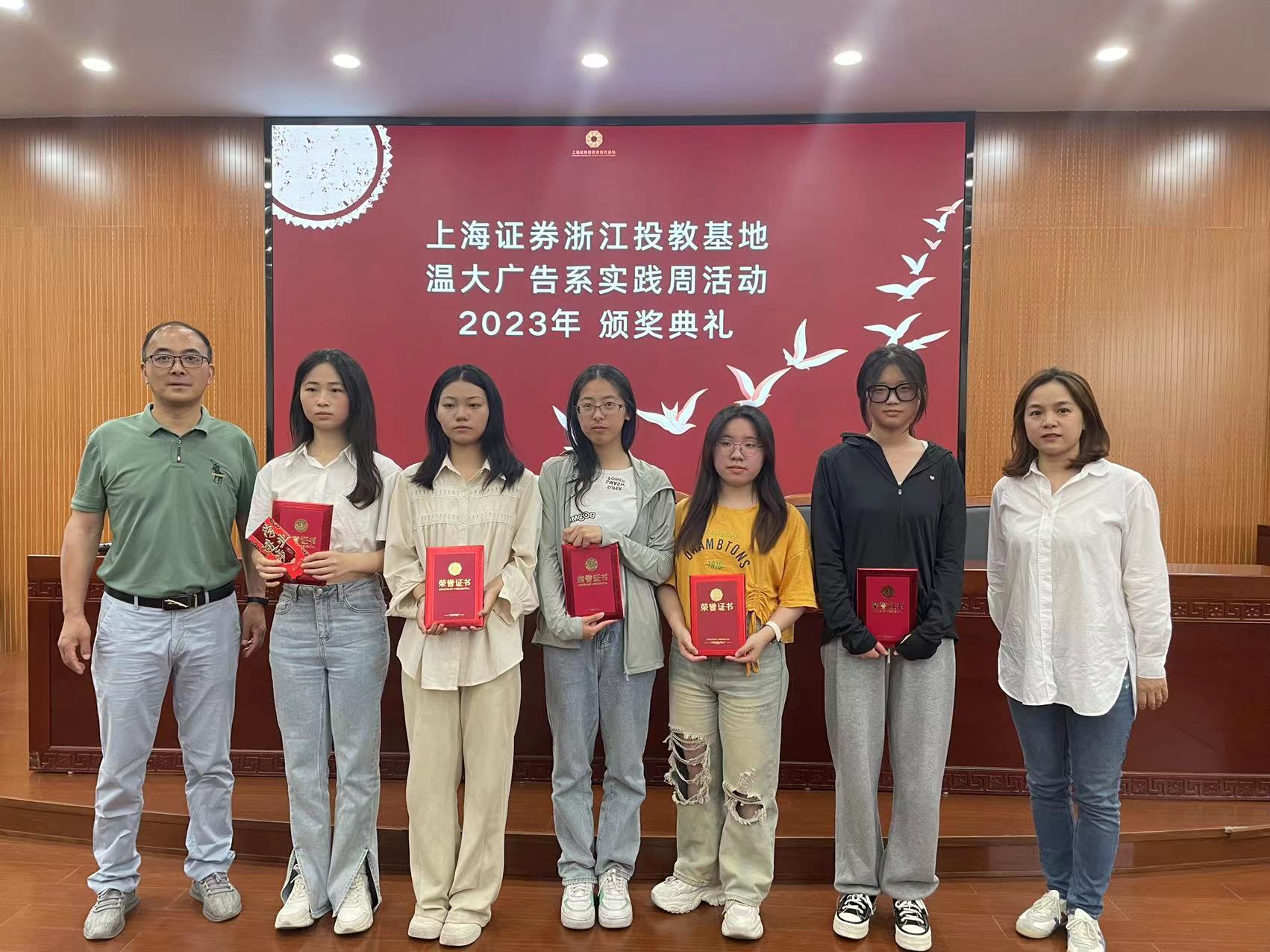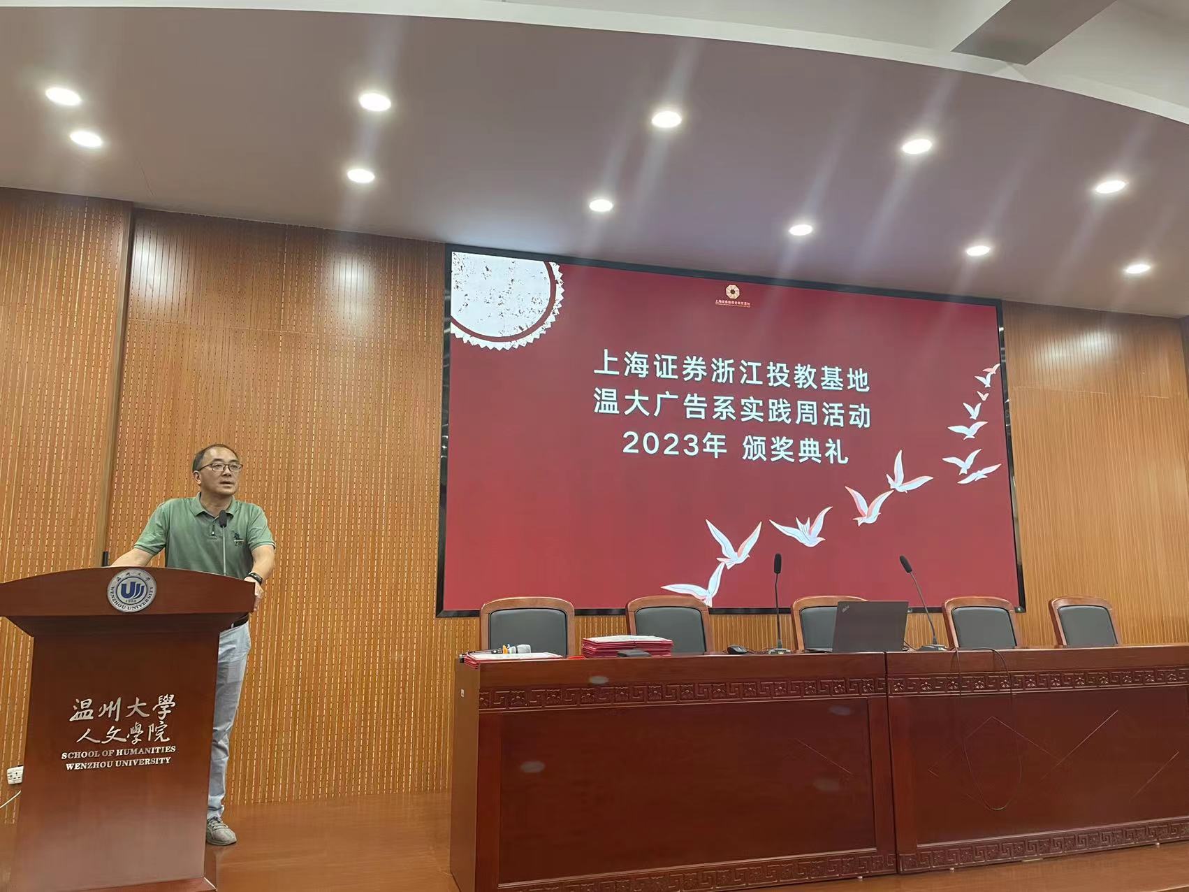 2023年6月2日,樱花小说 广告系与我校实践合作基地——上海证券浙江投教基地的企业方代表一同于人文楼报告厅举行上海证券投教基地温大广告系实践周活动颁奖典礼,以此表彰在本年度实践项目中创作出优秀投教作品的同学。