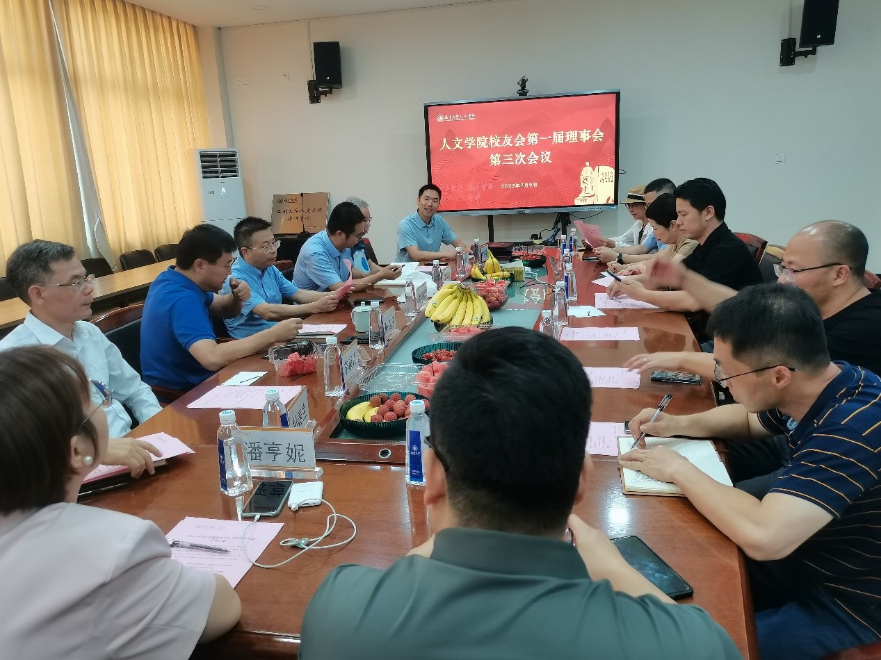 2023年7月9日下午4点,樱花小说 校友会于人文楼213会议室召开第一届理事会第三次会议,本次会议由校友会秘书长倪雷震主持。