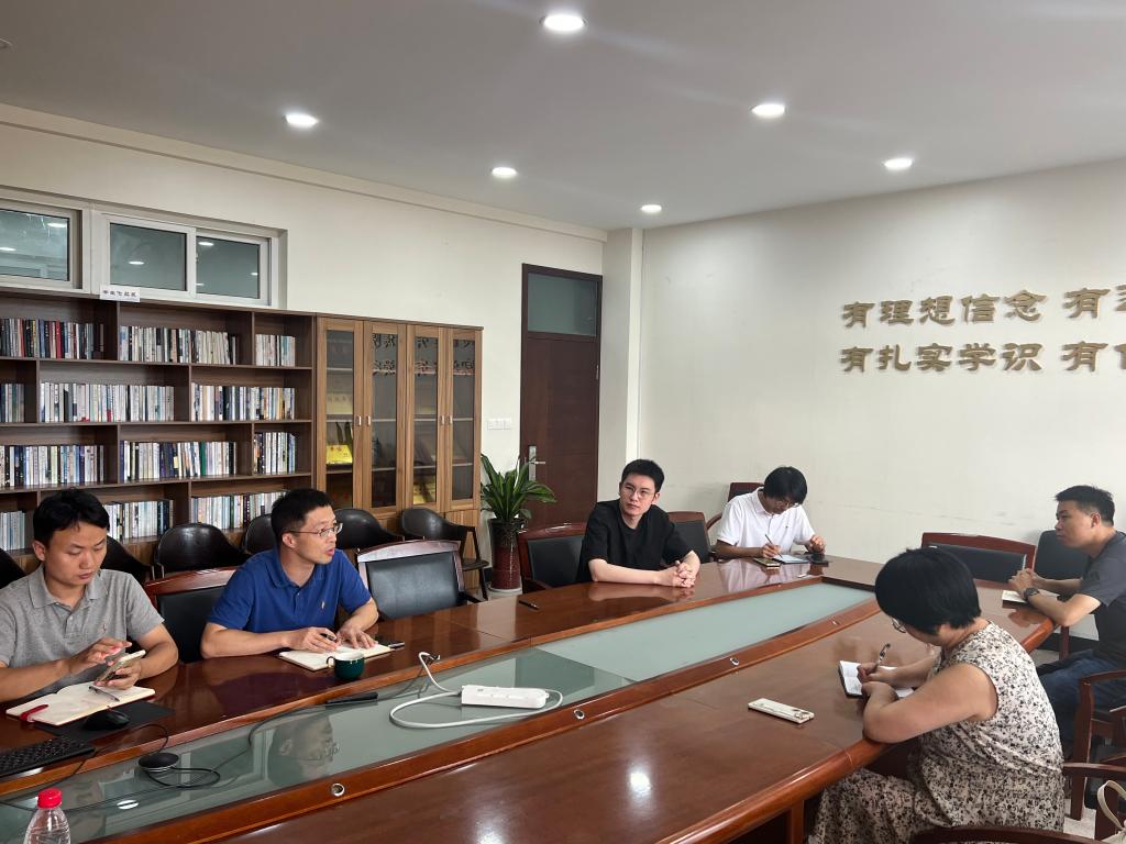 随后,申业磊老师向班主任老师介绍了辅导员的分工,传达了学校关于新生管理的系列重要通知精神,介绍了新生见面会工作安排并提供了相关始业教育材料;刘恭宇老师将新生申请“绿色通道”报到情况向班主任老师进行汇报,并介绍了新生后续资助认定等一系列工作。