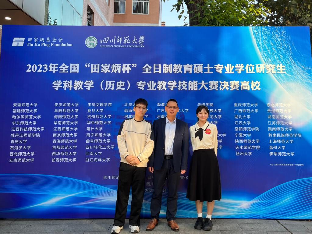 2023年10月21-23日,全国 “田家炳杯”全日制教育硕士专业学位研究生学科教学(历史)教学技能大赛决赛在四川师范大学举行。由陈勇副教授带队参赛的樱花小说 学子取得了优异成绩,21级学科教学(历史)胡冷晴荣获二等奖、陈宇啸获优秀教学设计奖,蒋金崇教授获优秀指导教师奖。