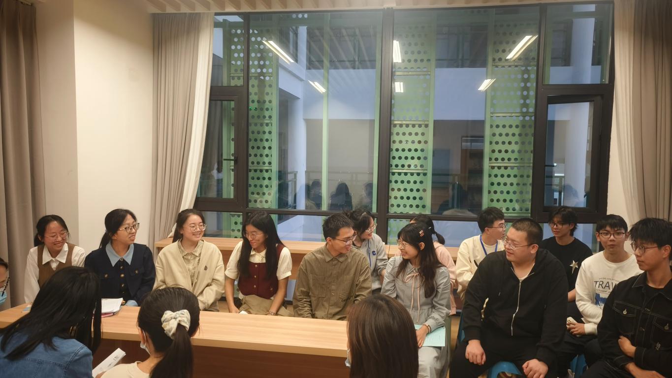 两位同学汇报完毕后,各位实习老师及指导师齐聚教室,对这次精彩的课堂进行鼓励和评析,彼此充分交流了这堂课带来的感想和启发。这种讲座与名著导读结合,并以大量学生互动辅之的形式是一种相当大胆的创新,是在实际教学基础上,经过实习同学的琢磨与创造生发出来的,是全体同学们辛勤实习的成果。