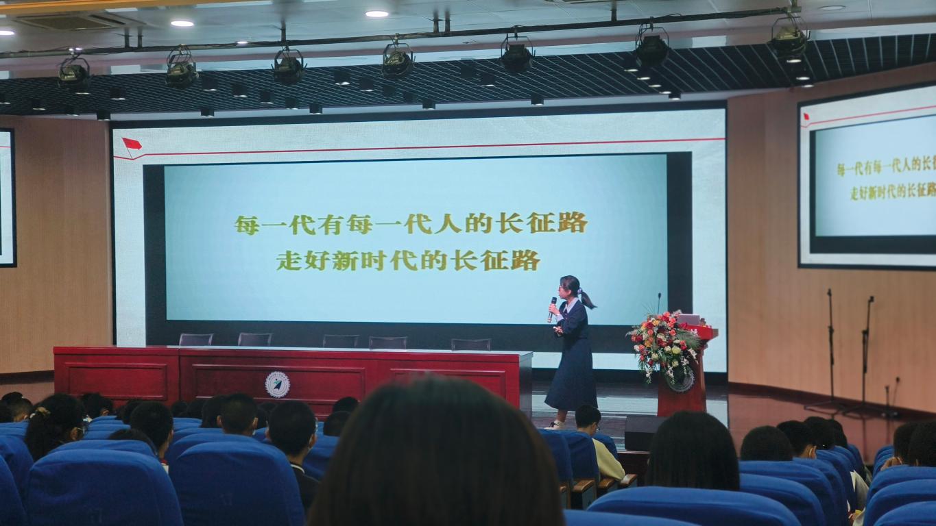 下半场由陈欣然同学组织,她提醒同学们“Over”还有“穿越”的解释,而在这本书中,也有一次伟大的穿越。她结合同学们曾经学习过的《七律·长征》《金色的鱼钩》《老山界》等课文,讲述波澜壮阔的长征。并提醒同学们注意发掘红军将士在长征路途中体现的精神——冒险、探索、发现、勇气和胆怯、胜利和狂喜。陈欣然的导读精彩自然,在场同学与老师一同被感染。
