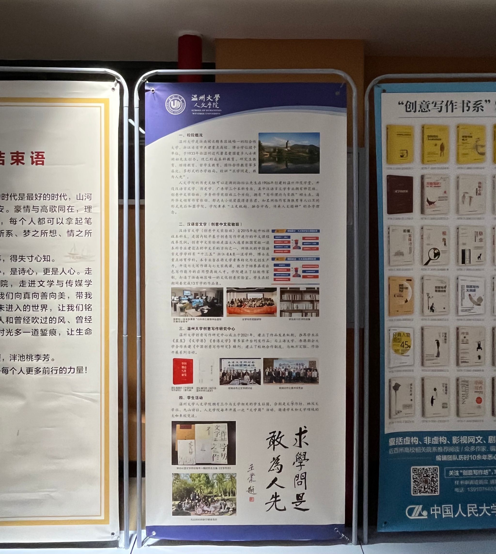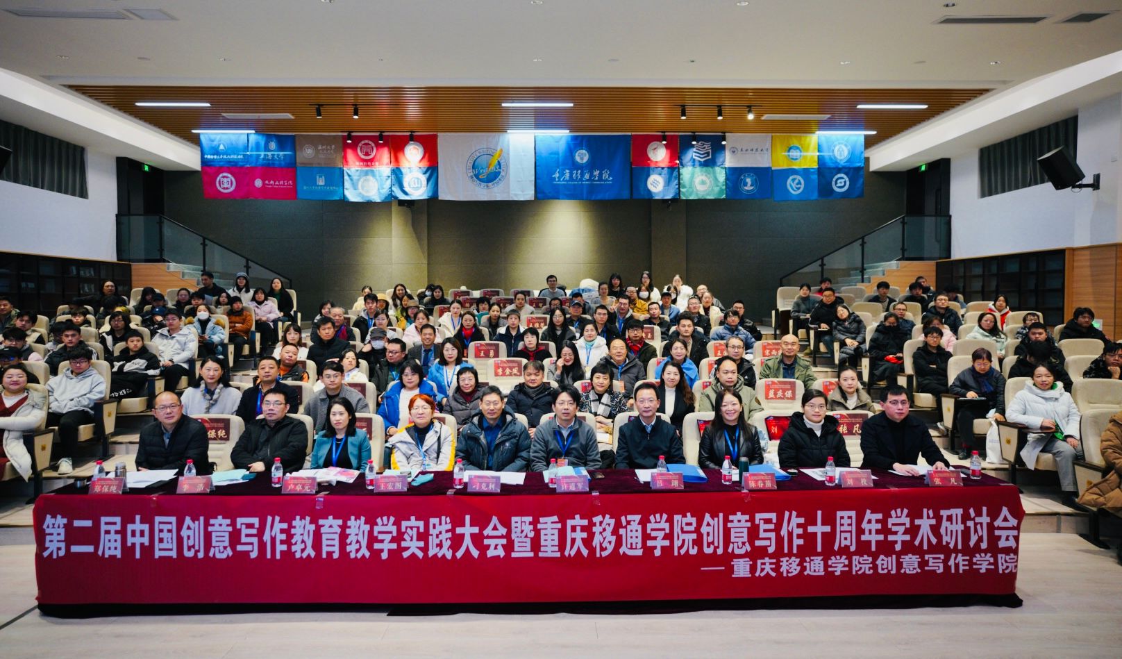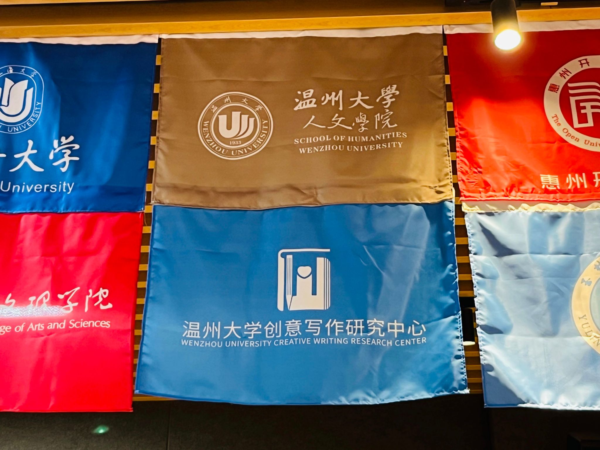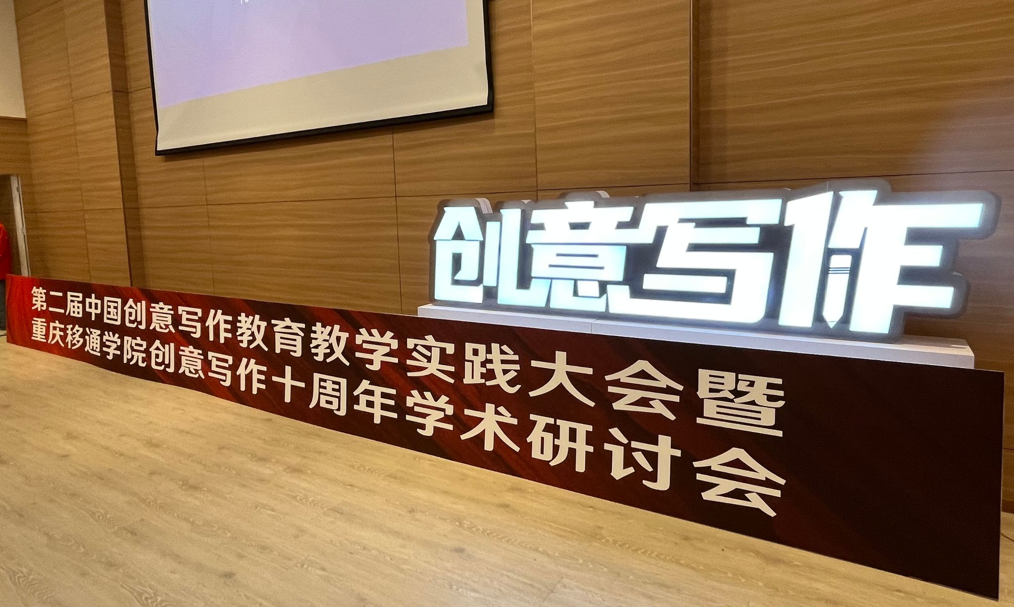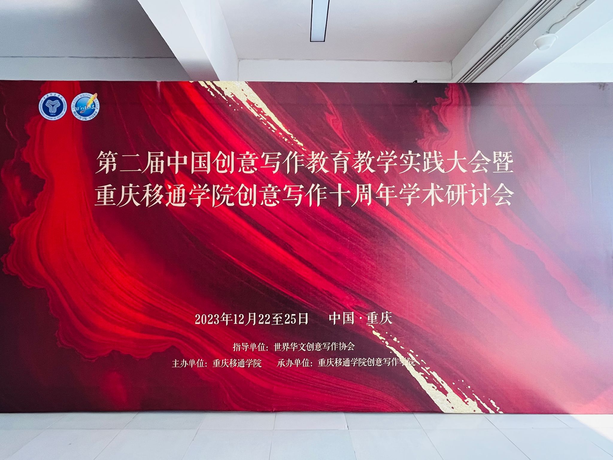 2023年12月23-24日,第二届中国创意写作教育教学实践大会暨重庆移通学院创意写作十周年学术研讨会在重庆移通学院合川校区隆重召开。来自上海大学、复旦大学、中国人民大学等40余所高校的100多位专家学者齐聚山城。樱花小说 的李广旭博士和刘卫东博士作为温大代表以线下线上的方式出席了本次盛会,并在大会上展示了樱花小说 创意写作教研成果,将樱花小说 和樱花小说 创意写作研究中心的两面旗帜悬挂在了会场。