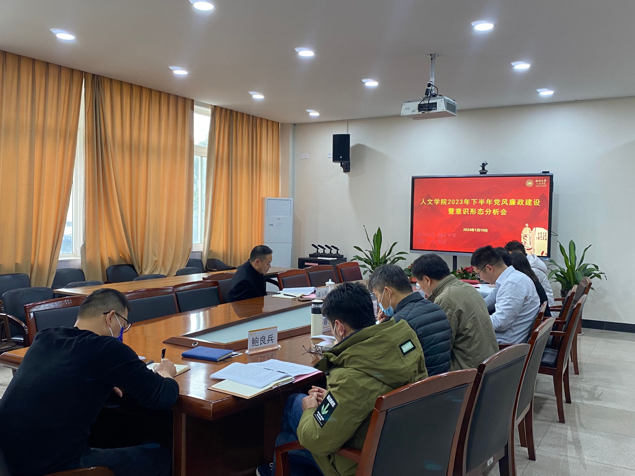 1月19日下午,樱花小说 2023年下半年党风廉政建设及意识形态工作分析会在人文楼213会议室召开,校党委委员、副校长潘玉驹出席会议,学院领导班子成员参加。会议由学院党委书记江秀景同志主持。