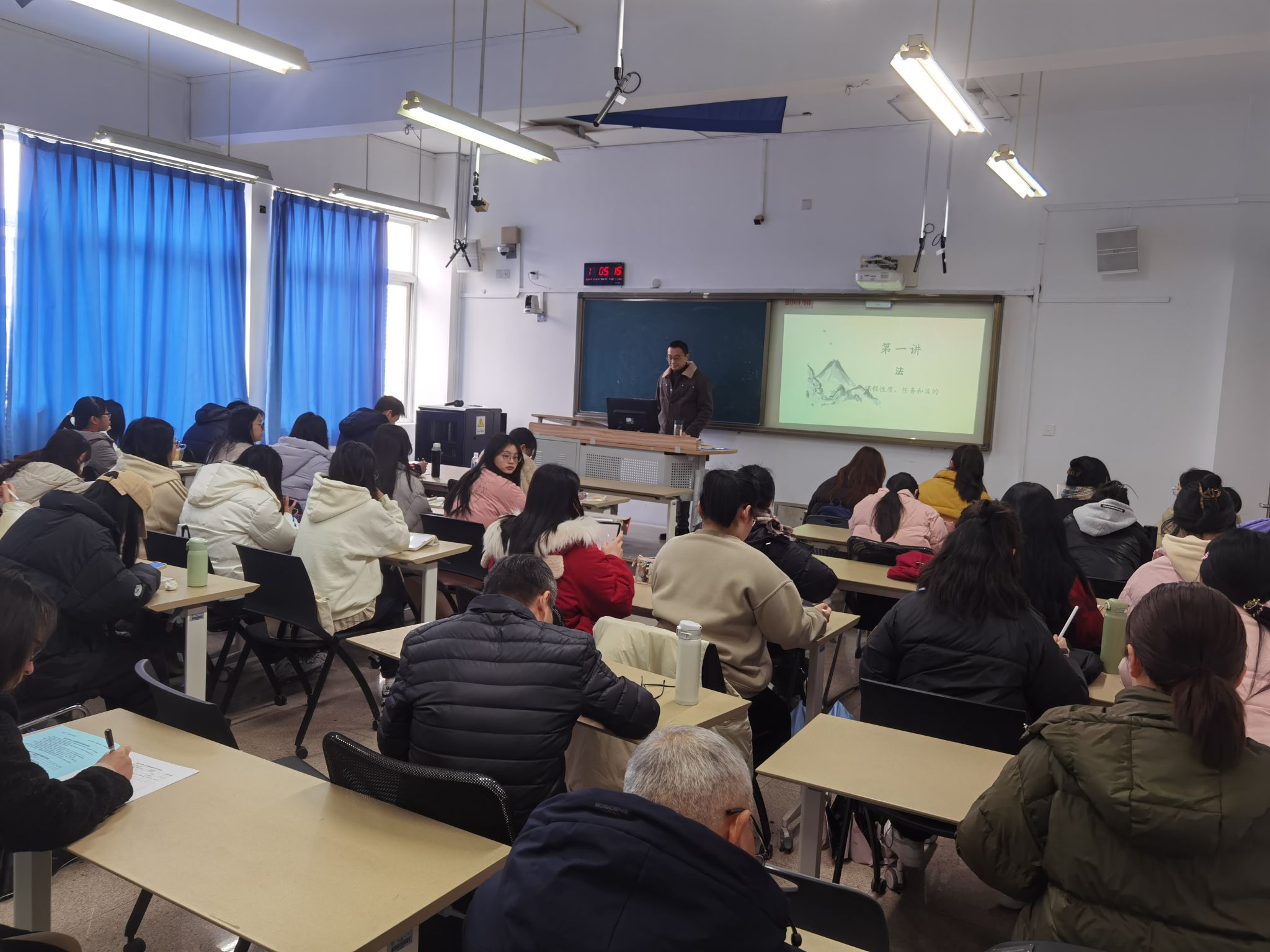 2月27日上午,新学期开学第一天,校党委委员、副校长潘玉驹,国资处处长张若妤,计财处处长陈小敏,校督导应向东老师,学院领导孙良好、郑春生、陈源源,学院督导陈心浩、李勇老师推门听课,在北校区人文楼410教室听取了洪之渊老师为21级汉语言文学(师范)学生开设的《中学语文课程与教学论》。
