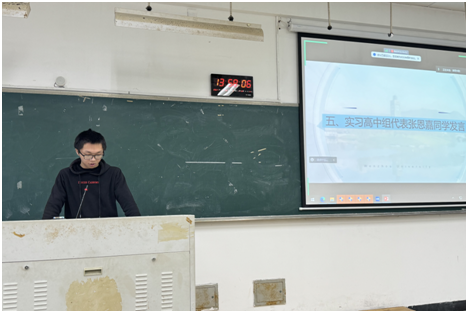 教育实习高中组代表张恩嘉同学则分享了自己对教育实习的认识,提出同学们应尽快适应角色身份的转变。