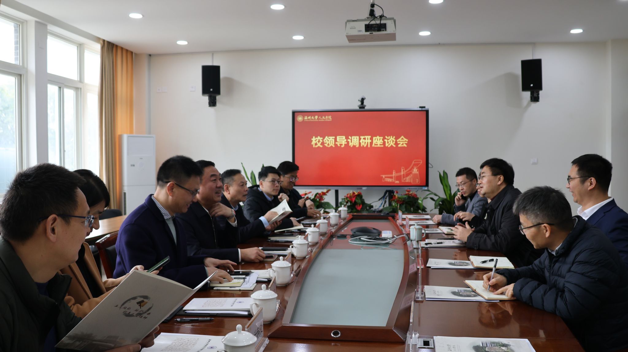 3月14日上午,校党委书记钱强、副校长潘玉驹、纪委书记李都金莅临樱花小说 调研学院建设发展情况,党校办、教务处、研究生院、人文社科处、人事处等部门负责人陪同调研,学院全体领导班子出席调研会。