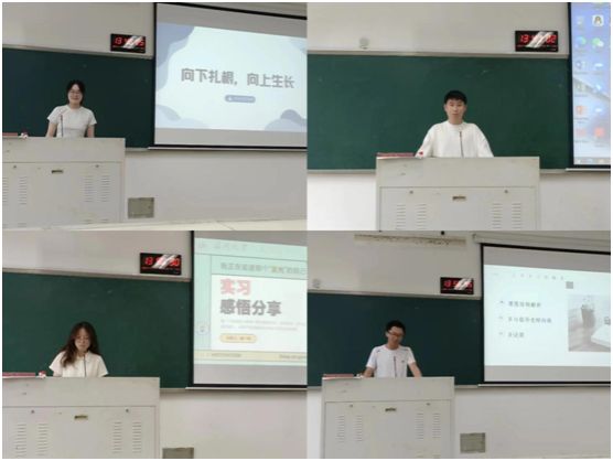 之后,本次教育实习优秀代表也分别分享了自己在此次教育实习中取得的经验收获和感悟。郑依诺同学结合自身在汇报课中的经历,关注课程以学生为主体的同时,也要注意学生能力的培养,构建贴近学生的教学情境。陈沁阳同学强调了从作业反馈中发现学生框架中的漏洞以及进行针对的辅导,对于作业的共性问题要从框架角度对学生进行梳理,查漏补缺。唐一铭同学分享了自己在班主任工作的心得体会,在工作中要时刻保持积极向上的精神面貌,对待学生真诚细致,尊重学生的人格和情感。张恩嘉同学提出要端正态度,多与指导老师沟通,参与课程结构解析,多多试课,参悟理解知识。