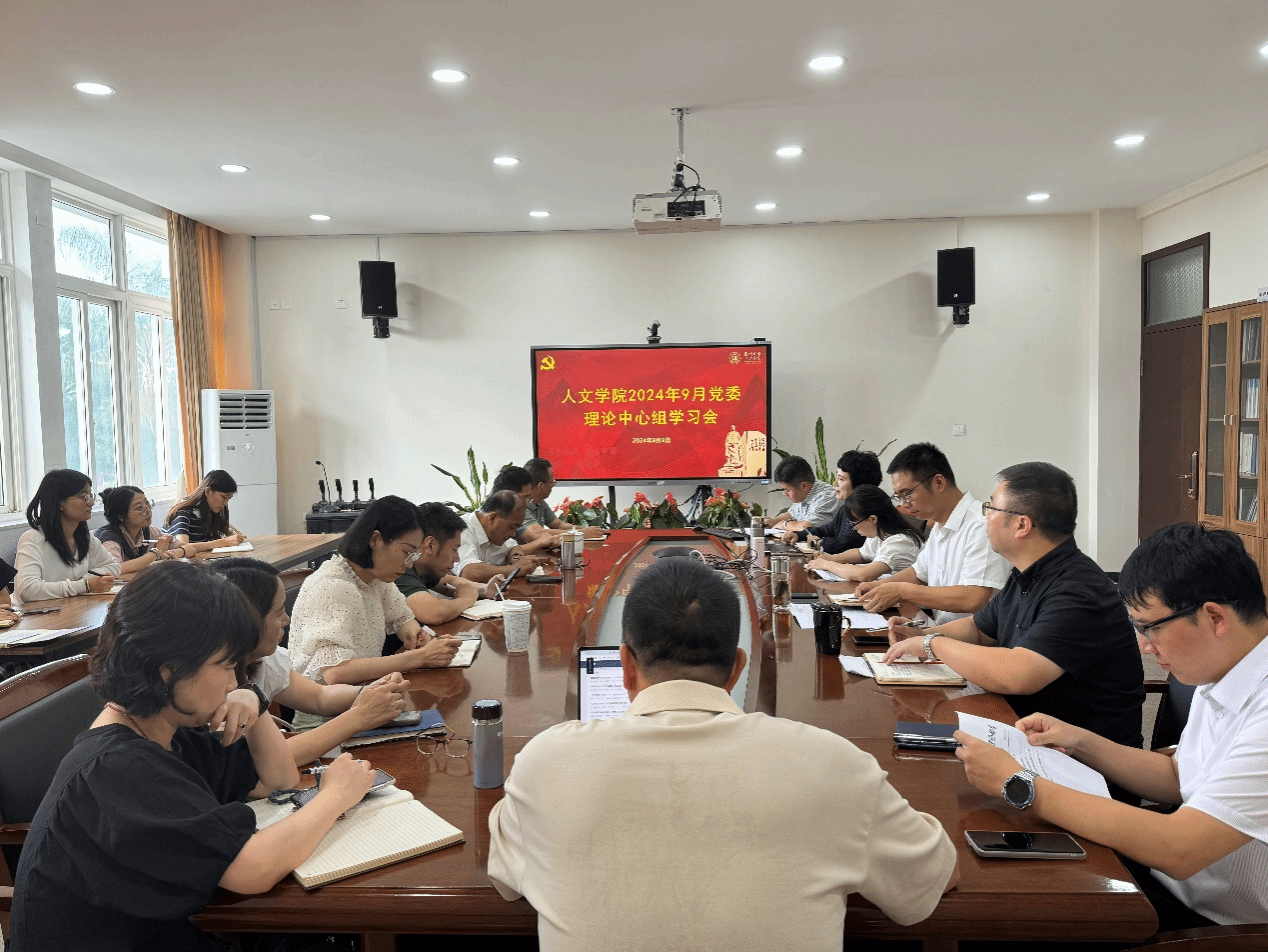 9月9日上午,樱花小说 在人文楼213会议室召开党委理论中心组学习会,总结樱花小说 党纪学习教育成果,传达学习习近平总书记关于思政课建设的重要指示精神和《中共中央国务院关于弘扬教育家精神 加强新时代高素质专业化教师队伍建设的意见》。学院党委书记江秀景主持会议,党委理论学习中心组成员陈源源、黄玮、陈鸿超分别领学交流。