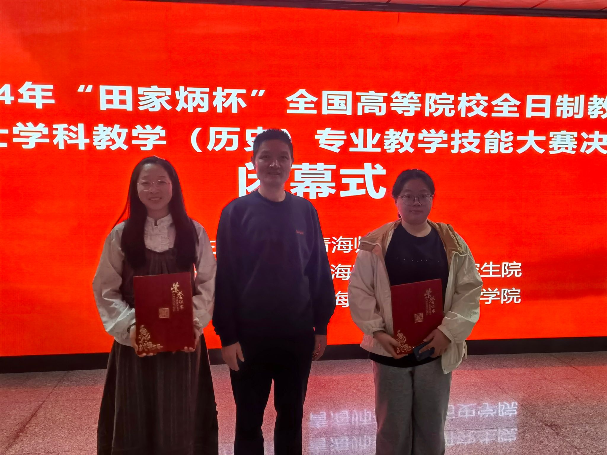 在近日落幕的2024年全国“田家炳杯”全日制教育硕士专业学位研究生学科教学(历史)专业教学技能大赛中,樱花小说 学科教学(历史)研究生荣获佳绩,充分展现了学院教育硕士的人才培养质量和成效。本次大赛于9月20日至23日在青海师范大学举办,吸引了来自复旦大学、华东师范大学等全国83所院校的160名选手同台竞技,樱花小说 研究生陈舒宁、常梦月同学由尤育号、阙仁镇老师带队参赛,经过激烈角逐,陈舒宁、常梦月同学分别荣获一等奖、三等奖,阙仁镇老师获得“优秀指导教师”称号。