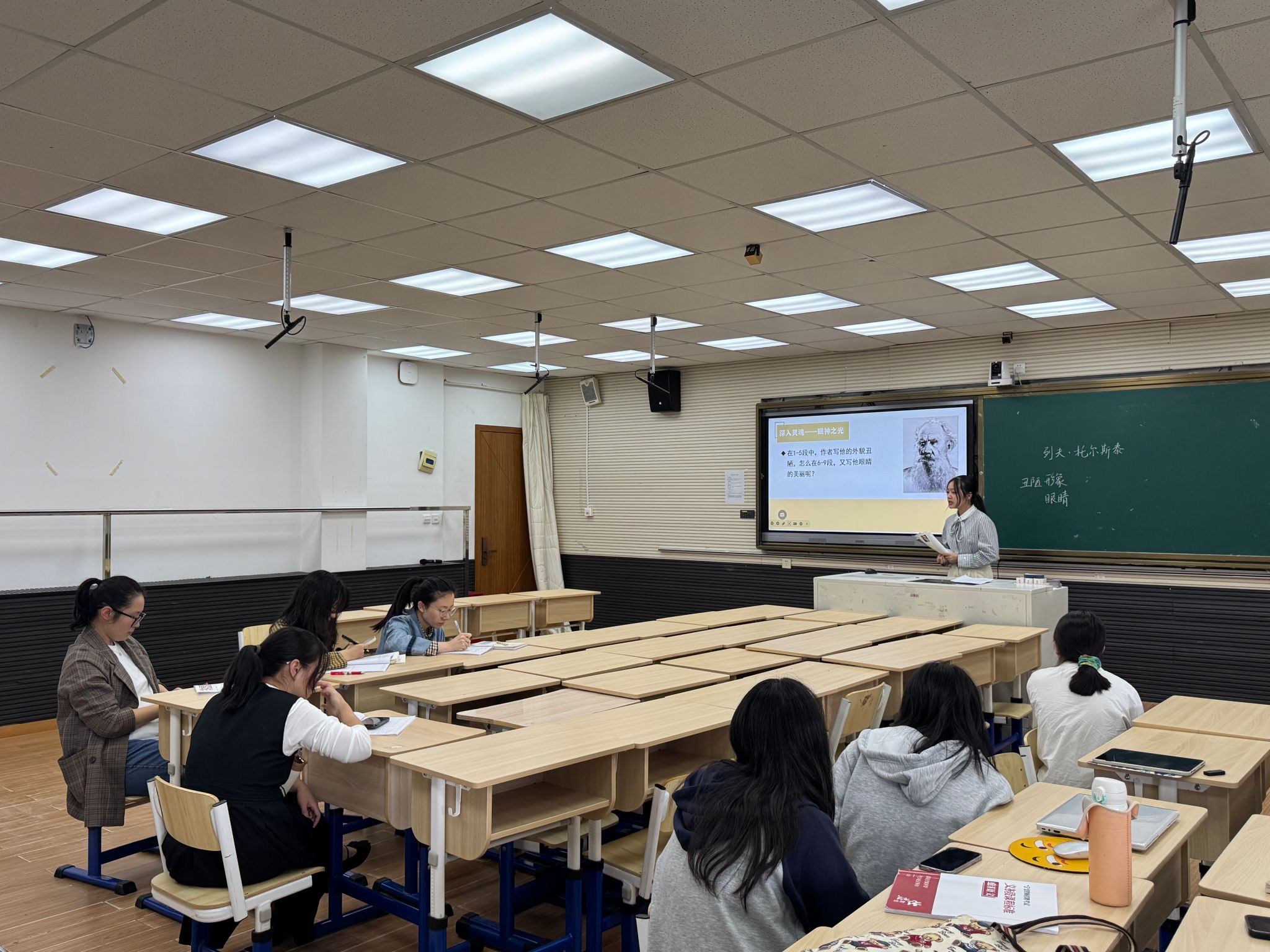 实习生王妍善则以列夫·托尔斯泰的传奇人生开场,从贵族到农民,从文学巅峰到孤独离世,托尔斯泰的一生充满矛盾,引导学生思考其形象与生活,带入课文《列夫·托尔斯泰》,开启一场关于外貌与灵魂的深度探索之旅。